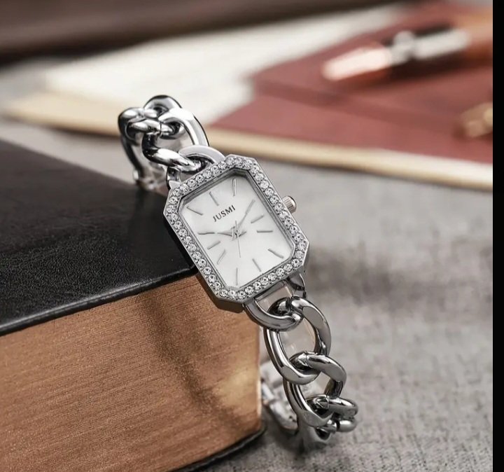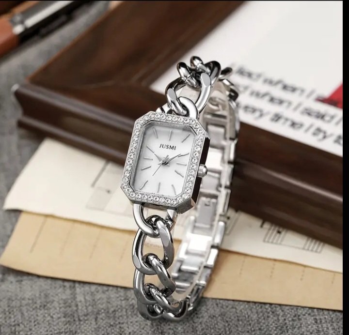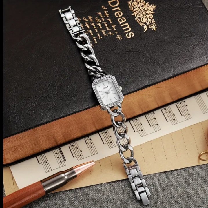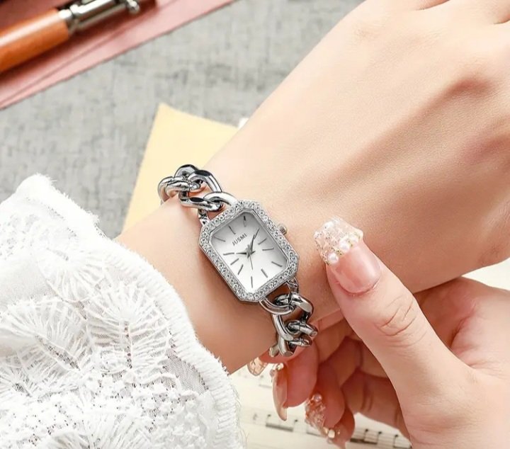 ساعة كوارتز أنيقة للسيدات مع سوار فولاذي مرصع بالراين هي السائدة في التجارة الخارجية
