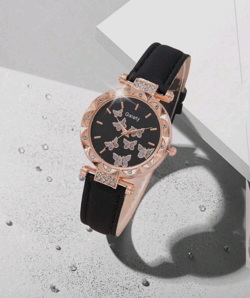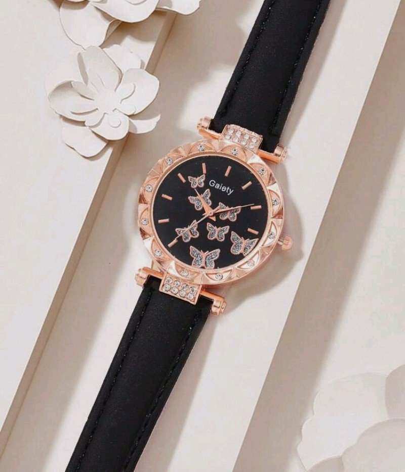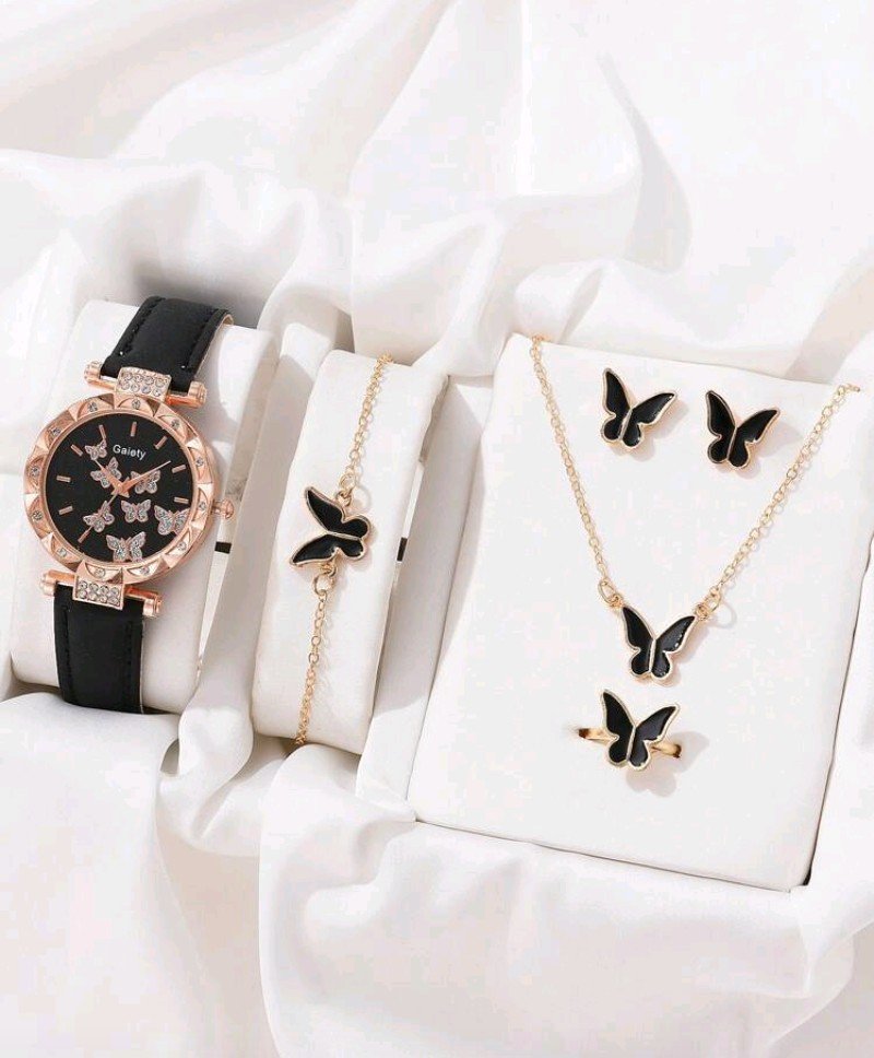 + Free Shipping6 قطع ساعة نسائية أنيقة وعصرية بنمط فراشة على العداد من الجلد الصناعي ساعة كوارتز + سوار قلادة خاتم أقراط مناسبة للارتداء اليومي هدية عيد ميلاد للأصدقاء عيد الحب موسم العودة إلى المنزل عيد الميلاد هالوين هدية مثالية