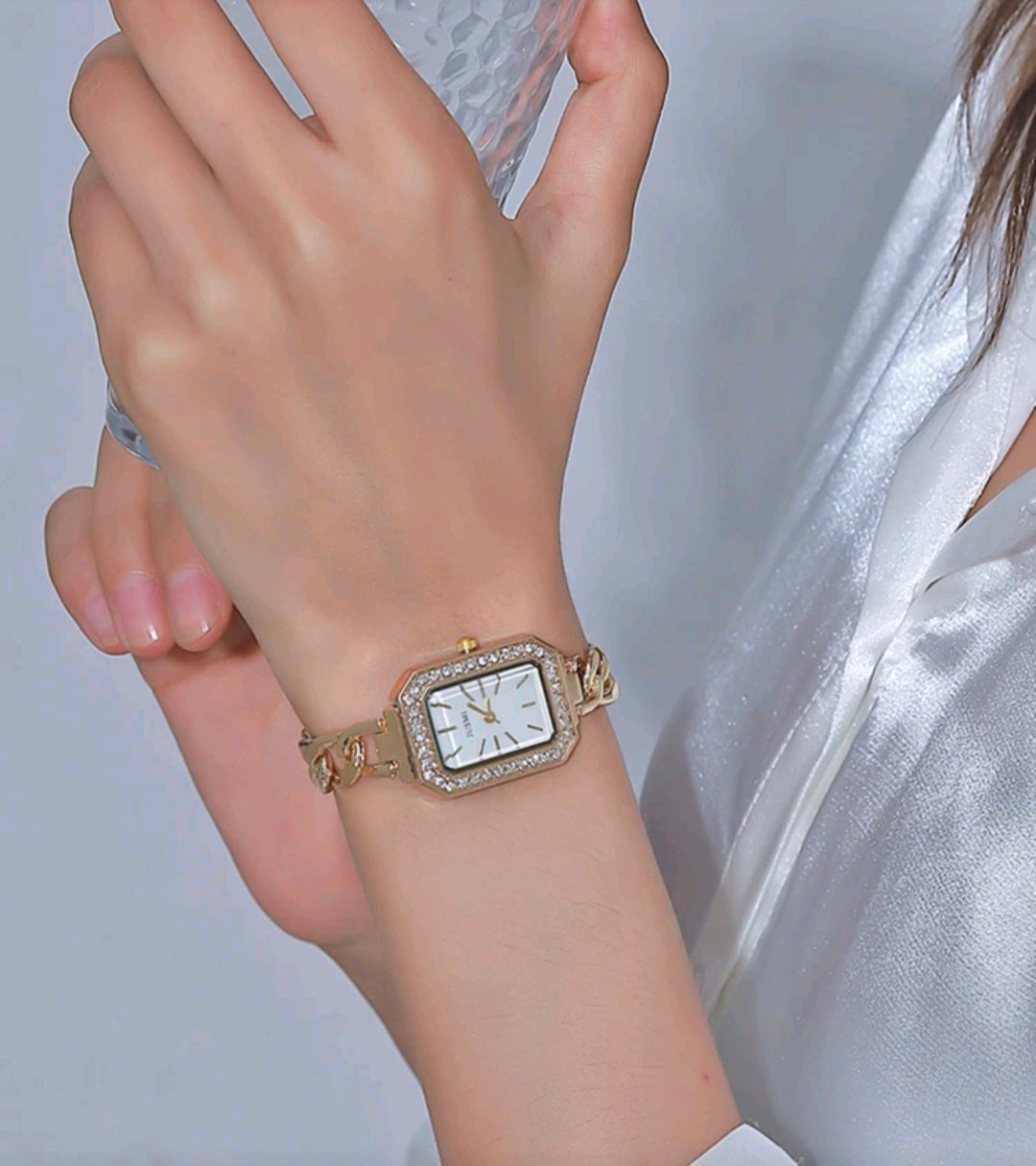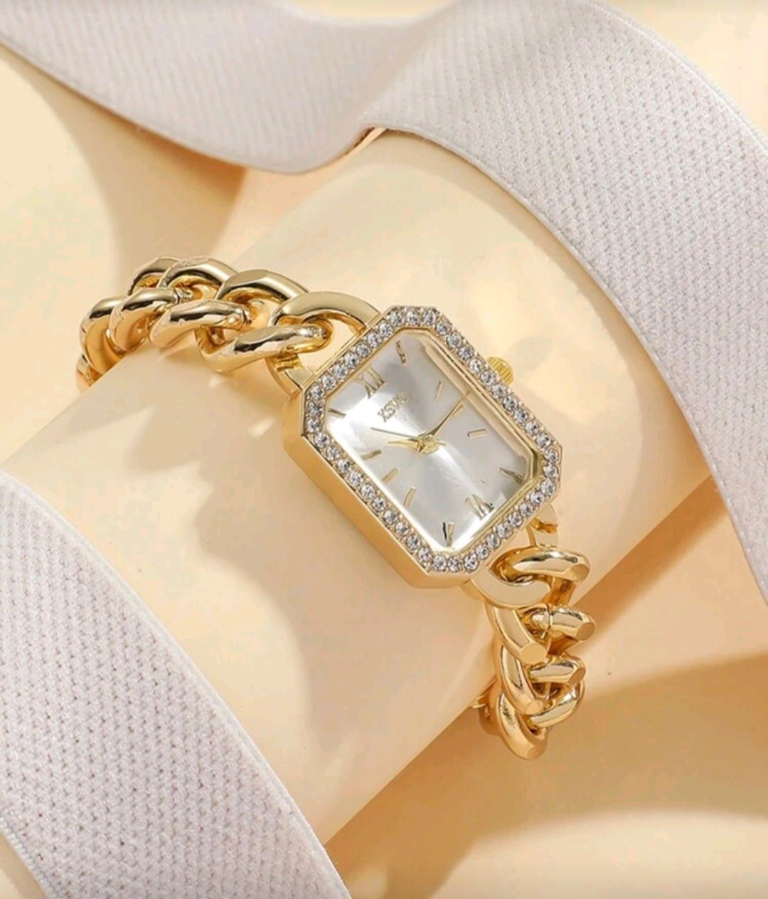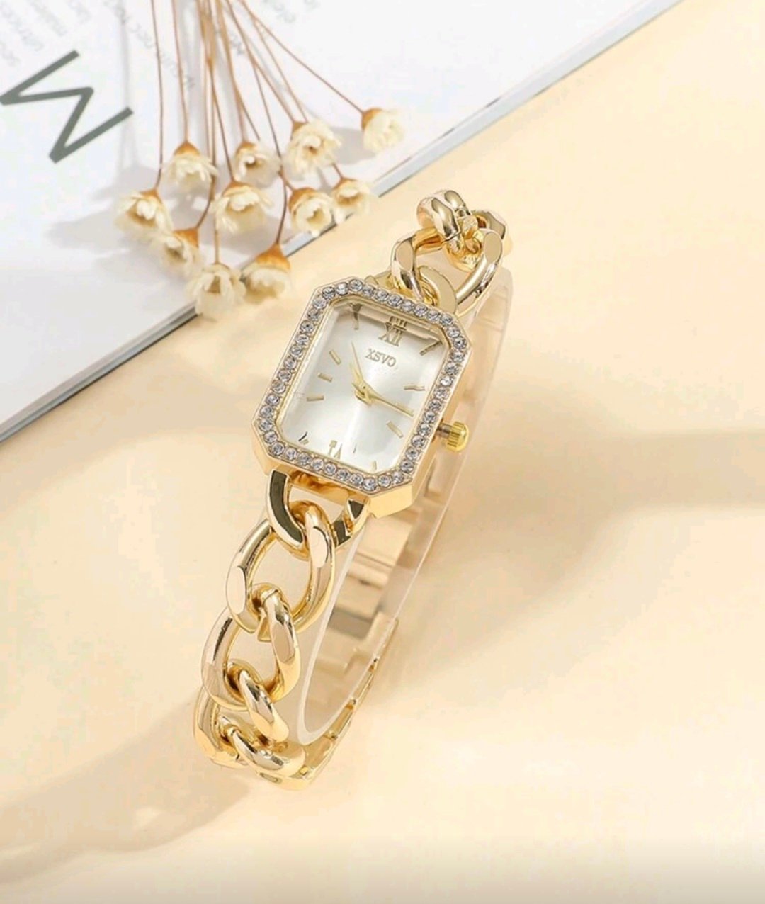 + Free Shippingساعة كوارتز فولاذيه بتصميم سلسله وعلامات بسيطه قطعه واحده انيقه وراقيه