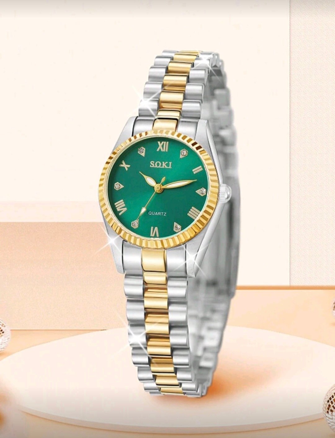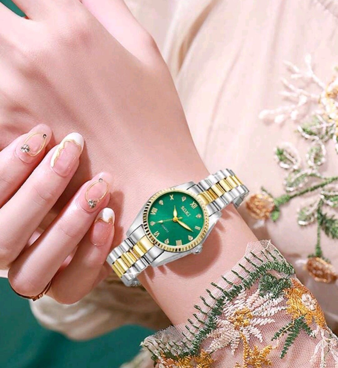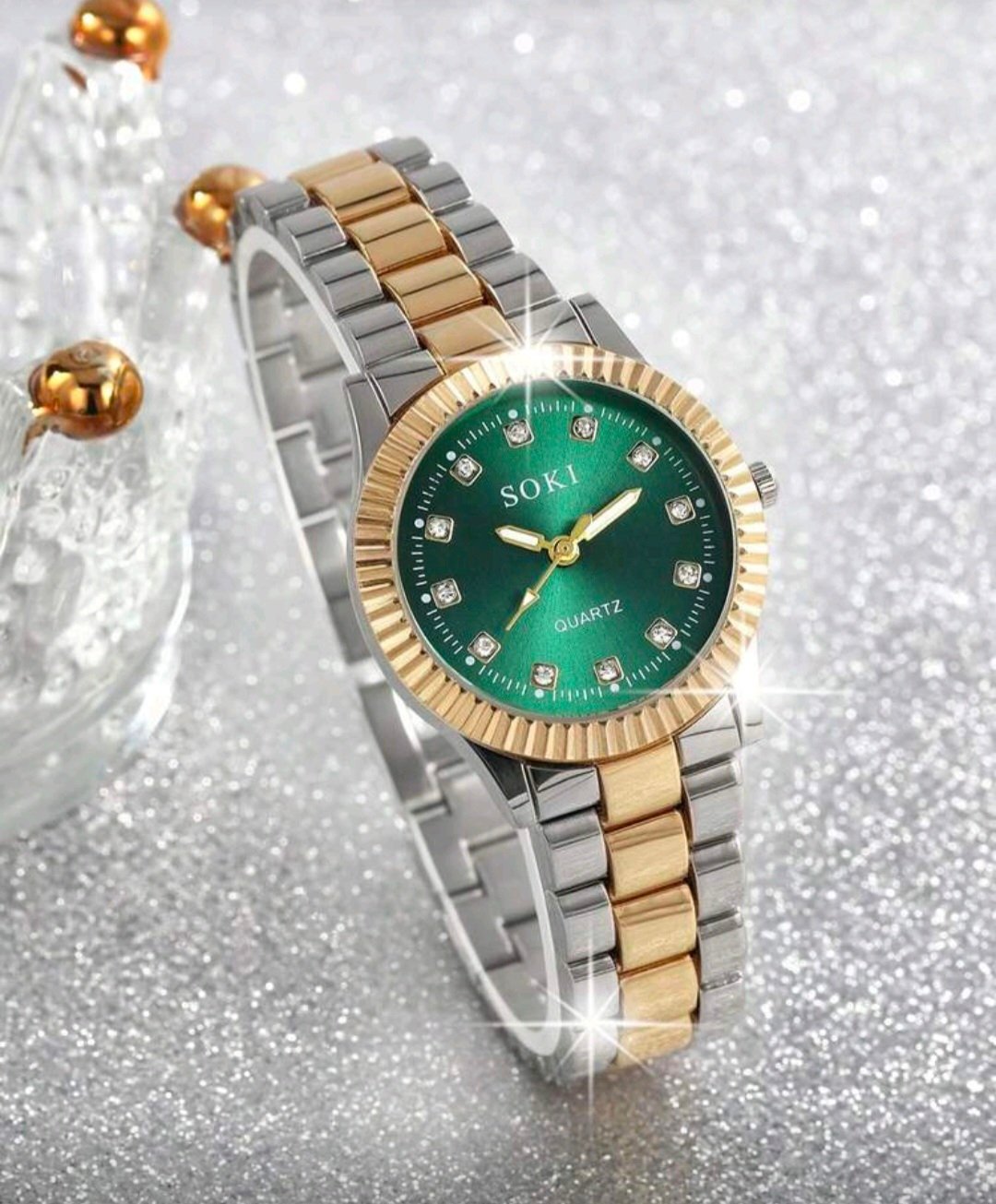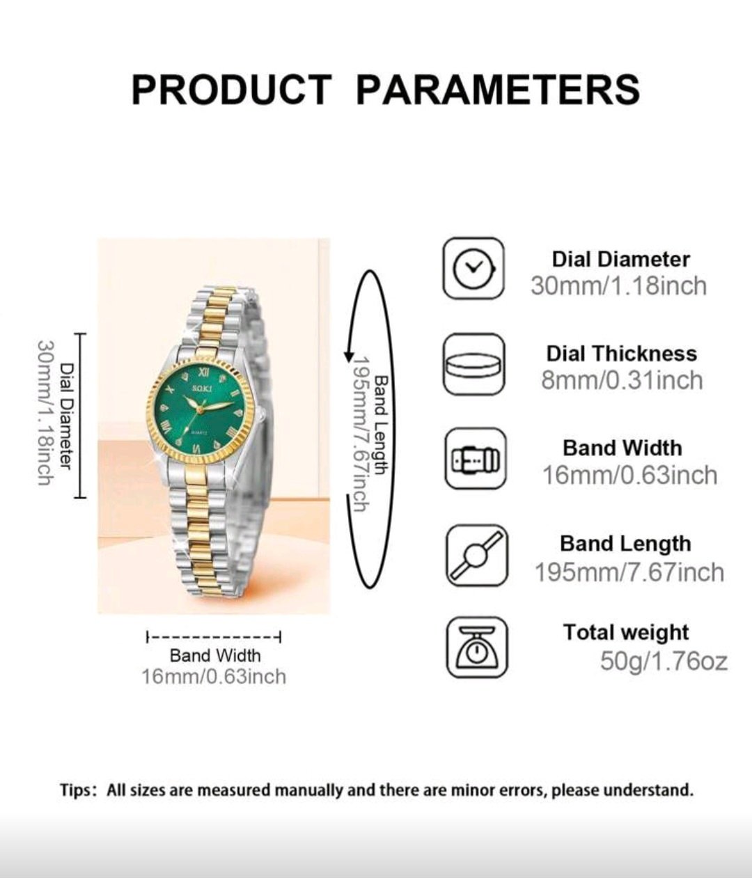 + Free Shippingساعة ستاتيه من soki مينا ذهبي مرصع بالكامل بالالماس سوار من سبيكه معدنيه ساعة يد كوارتز فاخرة
