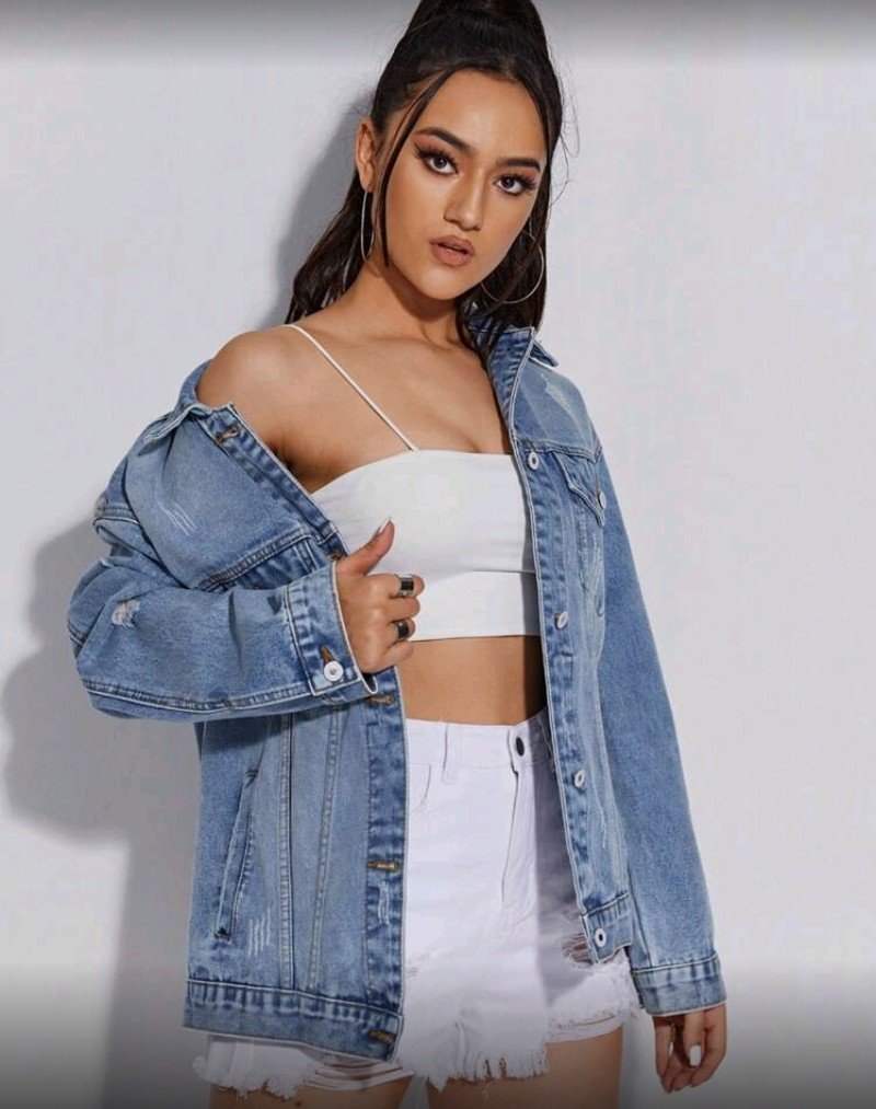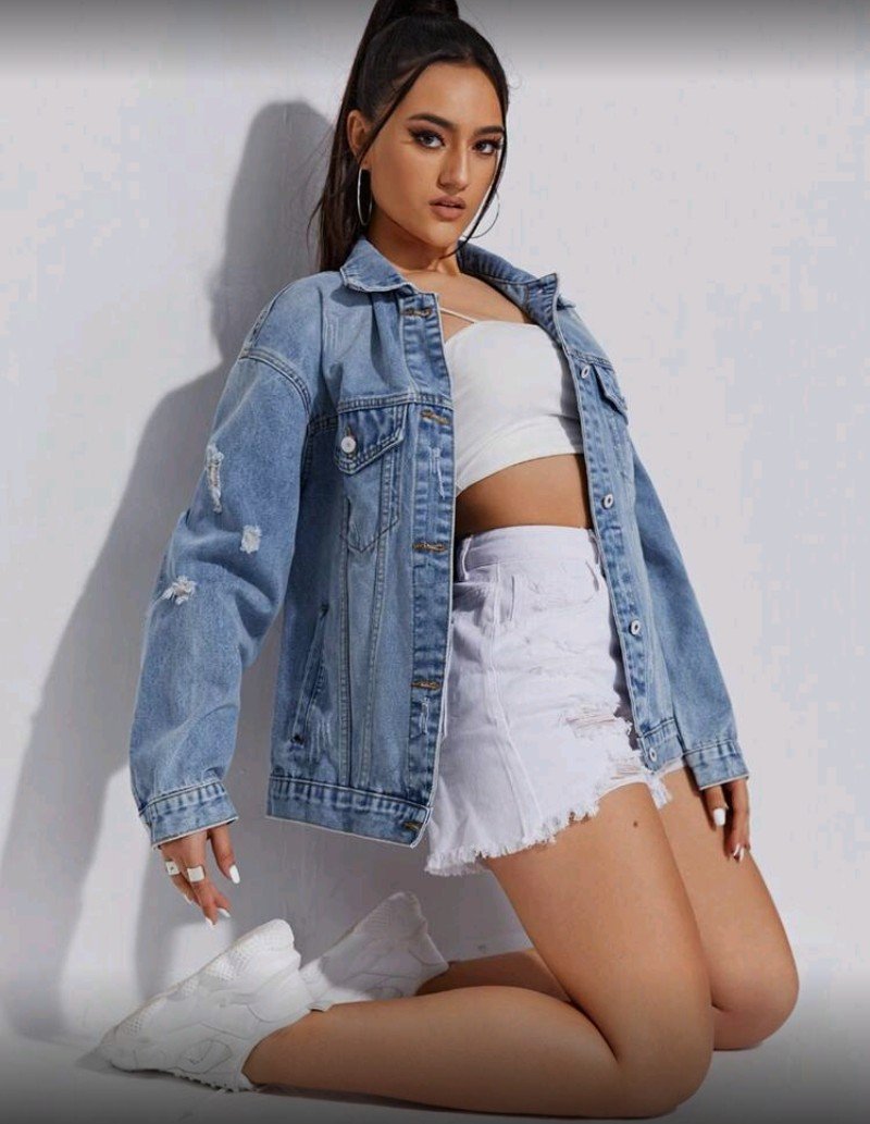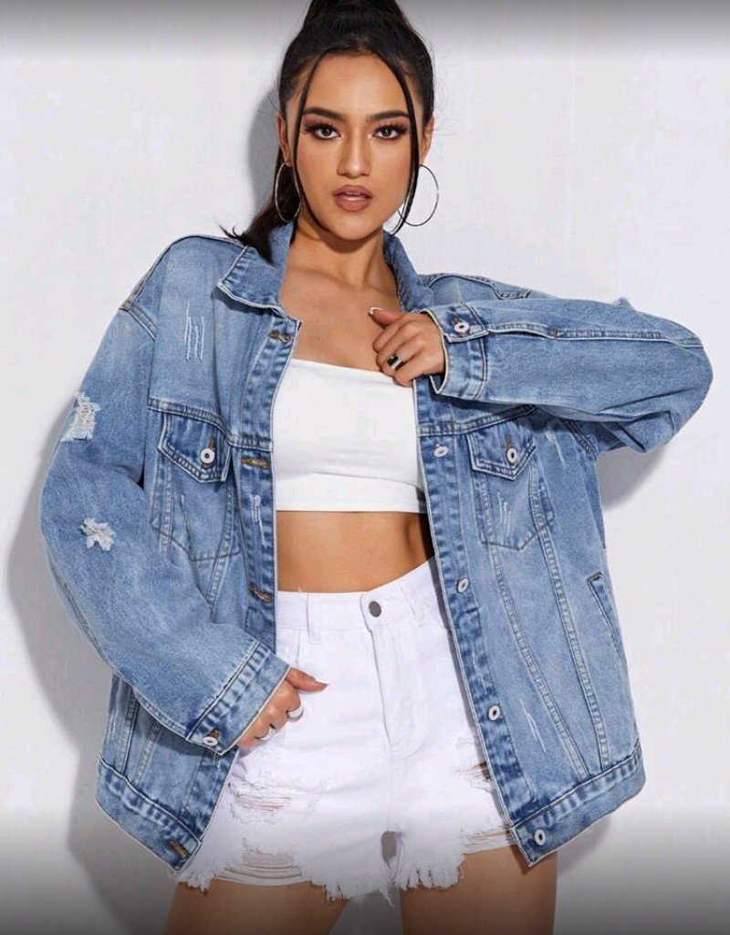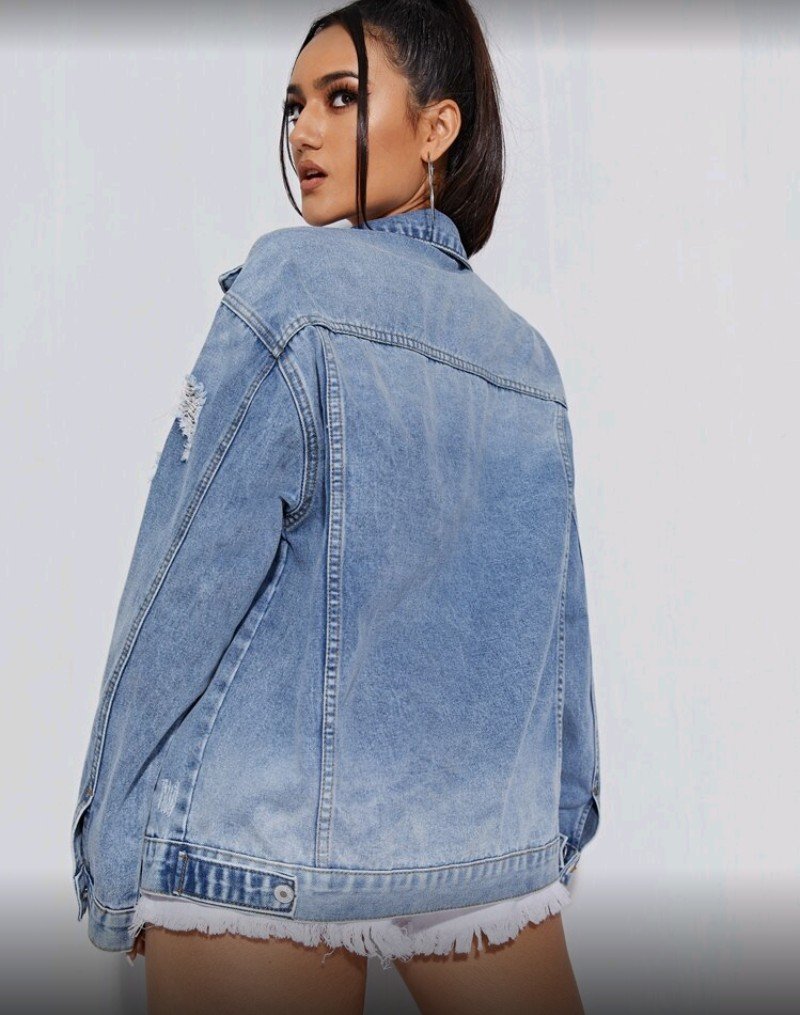 + Free Shippingسترة جينز فضفاضة ومتشققة