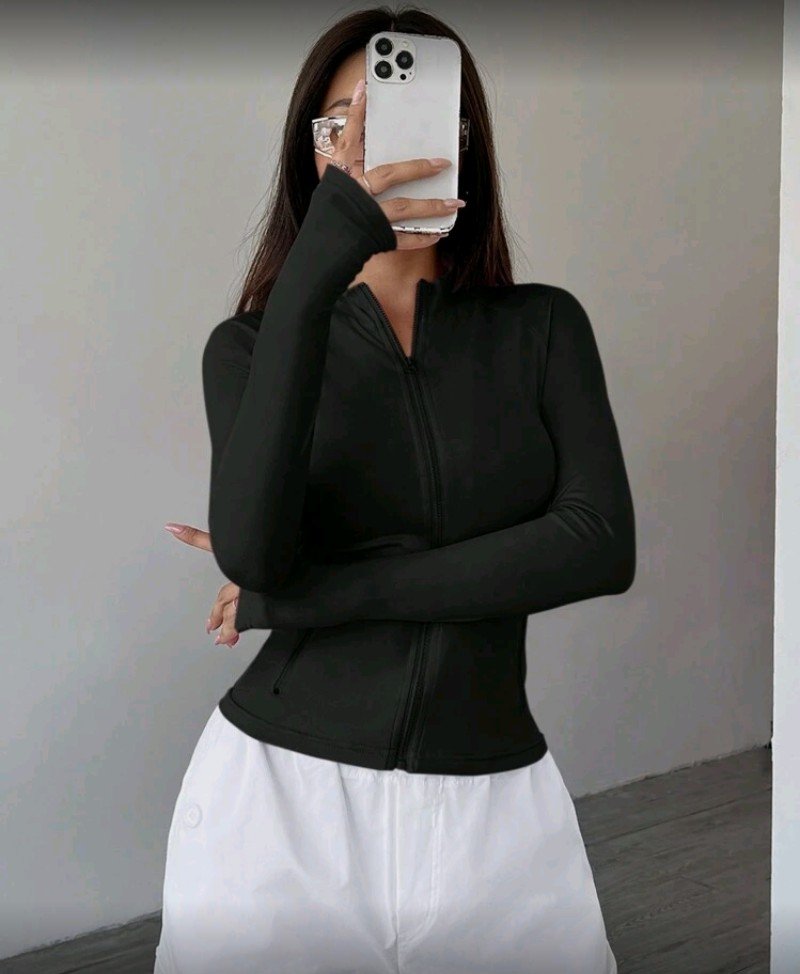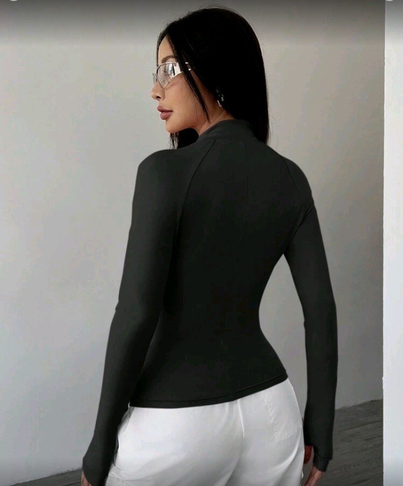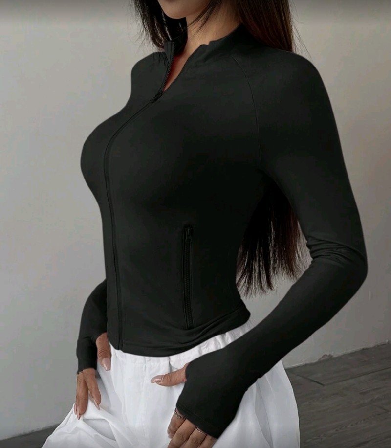 سترة نسائية عالية الرقبة بأكمام طويلة وسحاب – قمة تمرين قابلة للتمدد ومريحة لليوغا واللياقة البدنية والجري، بألوان صلبة بأسلوب ريترو مع ياقة واقفة، ملابس رياضية لفصل الربيع/الصيف/الخريف، سترة تمرين، ملابس رياضية للصالة الرياضية، تصميم بسيط، نسيج متين