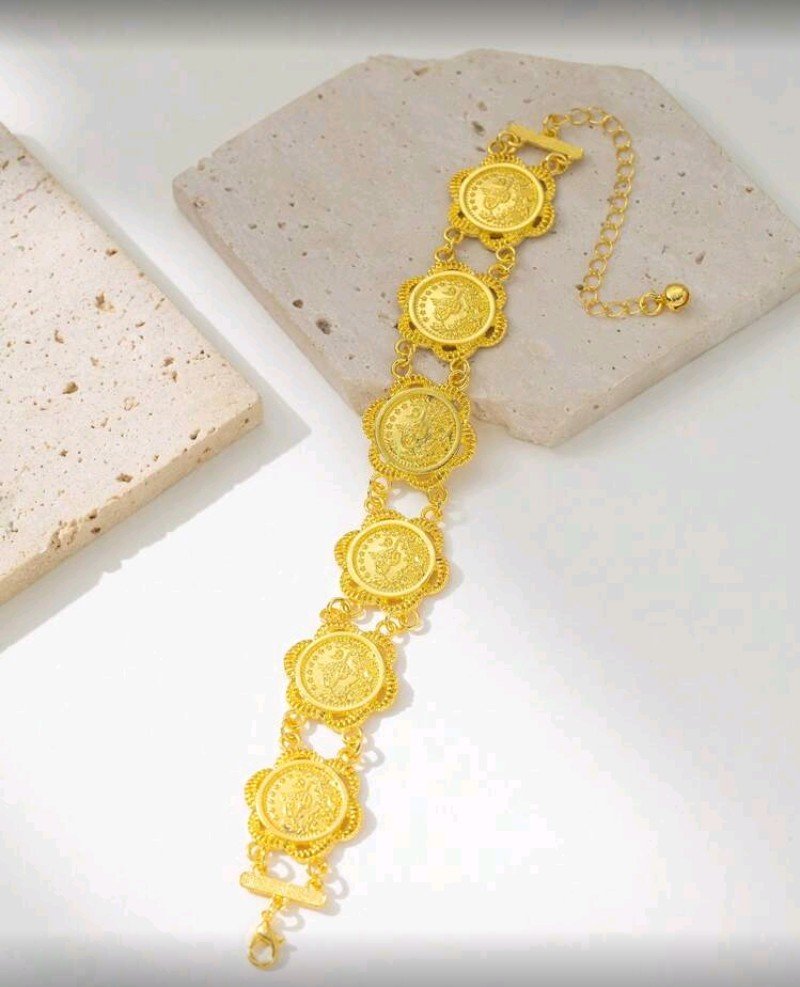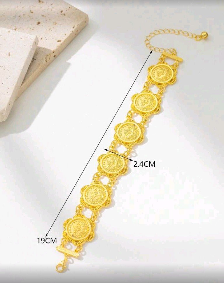 سوار سلسلة عملات ذهبية دائرية أنيق، مناسب للتجمعات اليومية وحفلات الزفاف.