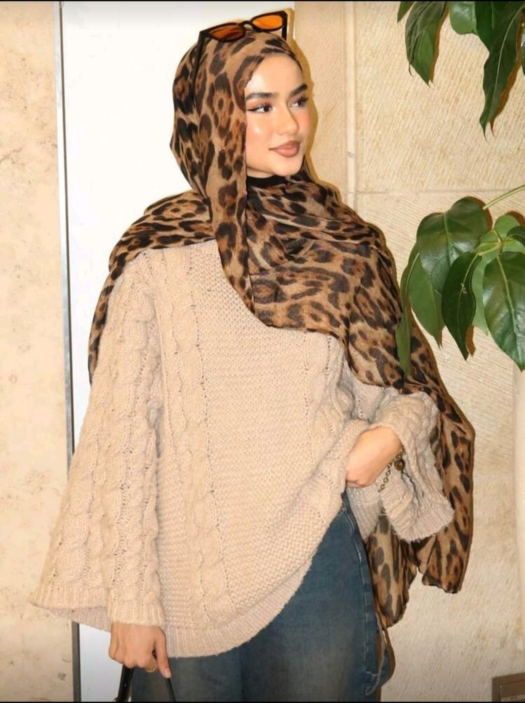 قطعة وشاح نسائي بتصميم جلد الفهد البوهيمي، خفيف الوزن وجيد التهوية، مثالي للاستخدام اليومي