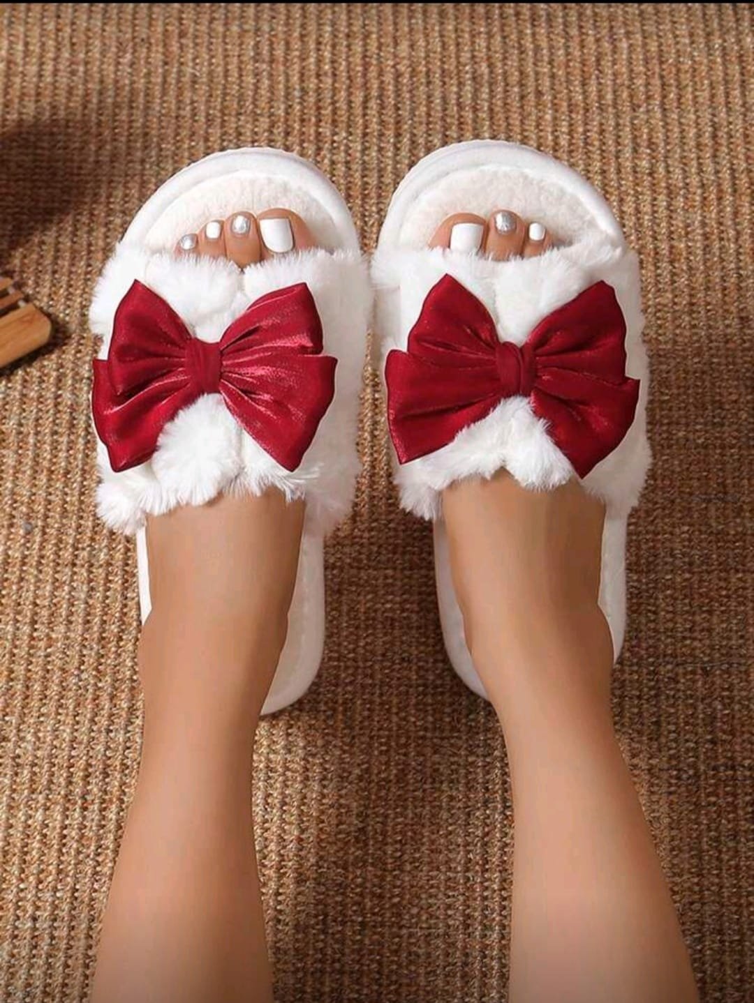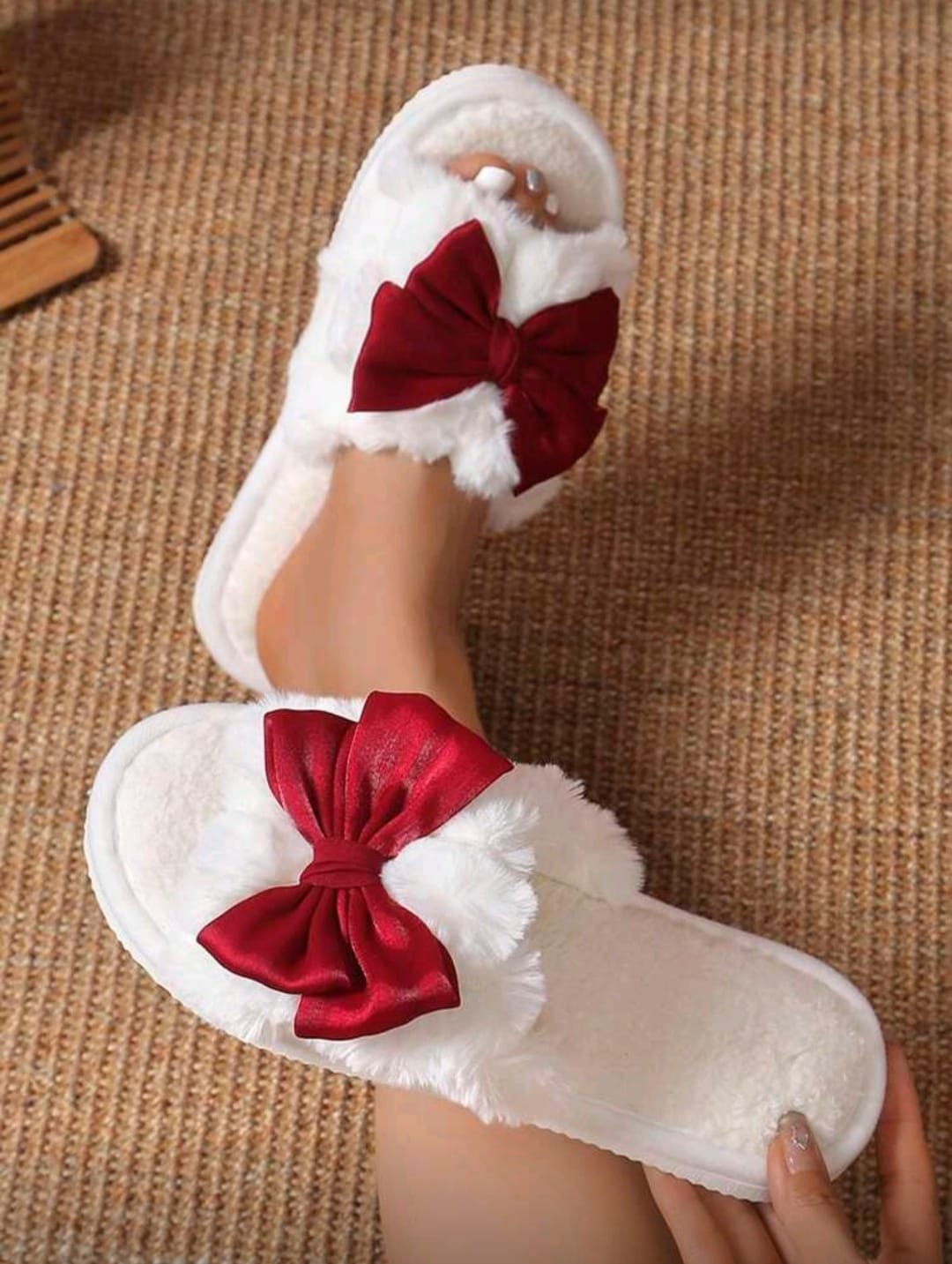 + Free Shippingشباشب نسائية دافئة وناعمة مزينة بفيونكة، أحذية منزلية مريحة لجميع الفصول، هدية مثالية لعيد الحب مقاس 41-40 CN