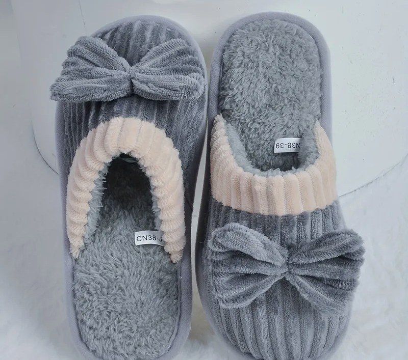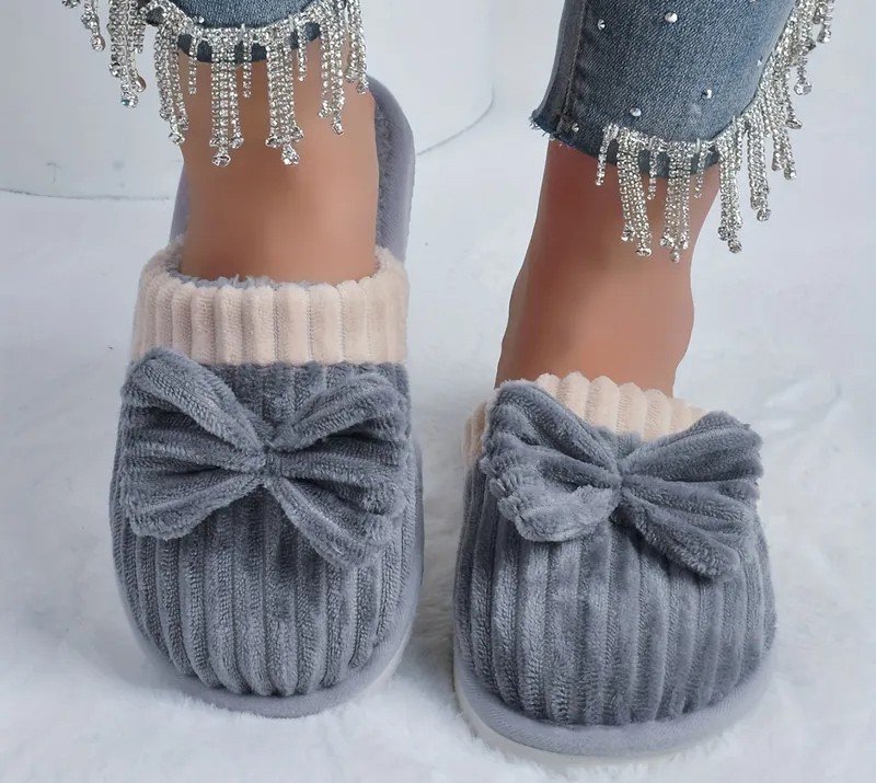 نعال نسائية بتفاصيل رباط، شرائط من المخمل، سهلة الارتداء، أحذية داخلية مريحة، بطانة قماش قابلة للغسل، نعل EVA، تصميم شتوي، أحذية مريحة للمنزل