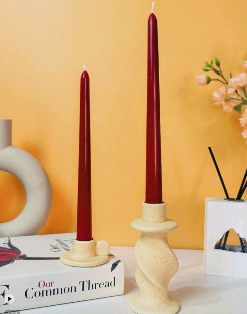 صندوق من قطعتين شموع طويلة ملونة على شكل فرع بطول 25 سم، بدون رائحة ولا دخان، مناسبة لطاولة عشاء متوفر باللون الاحمر الغامق لون البرغندي