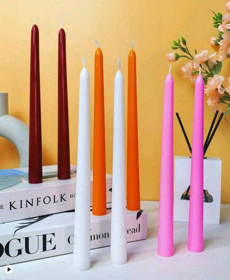 + Free Shippingصندوق من قطعتين شموع طويلة ملونة على شكل فرع بطول 25 سم، بدون رائحة ولا دخان، مناسبة لطاولة عشاء