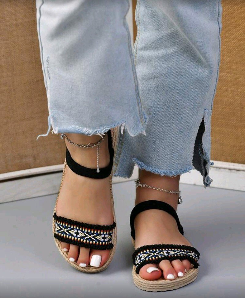 صنادل نسائية مسطحة أنيقة، مناسبة للشاطئ في فصلي الربيع والصيف، مانعة للانزلاق، بتصميم بوهيمي جذاب، مستوحاة من الطراز الأوروبي الغربي، صنادل مرنة أنيقة