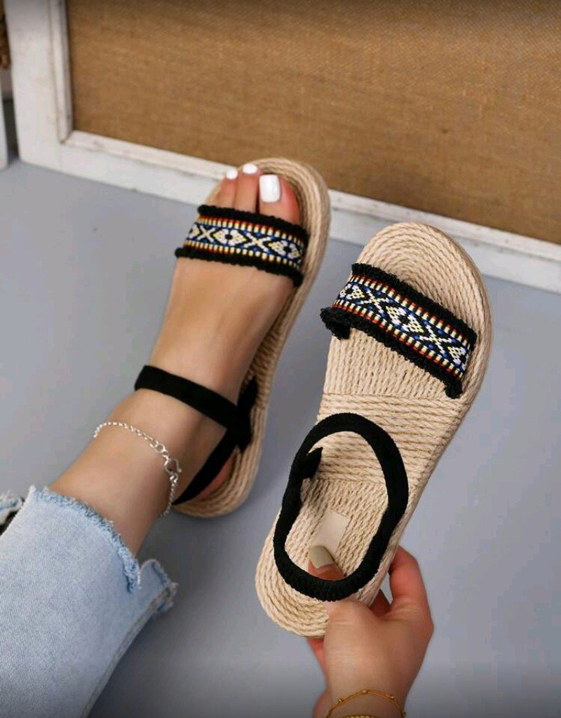 + Free Shippingصنادل نسائية مسطحة أنيقة، مناسبة للشاطئ في فصلي الربيع والصيف، مانعة للانزلاق، بتصميم بوهيمي جذاب، مستوحاة من الطراز الأوروبي الغربي، صنادل مرنة أنيقة