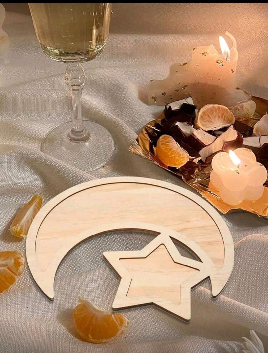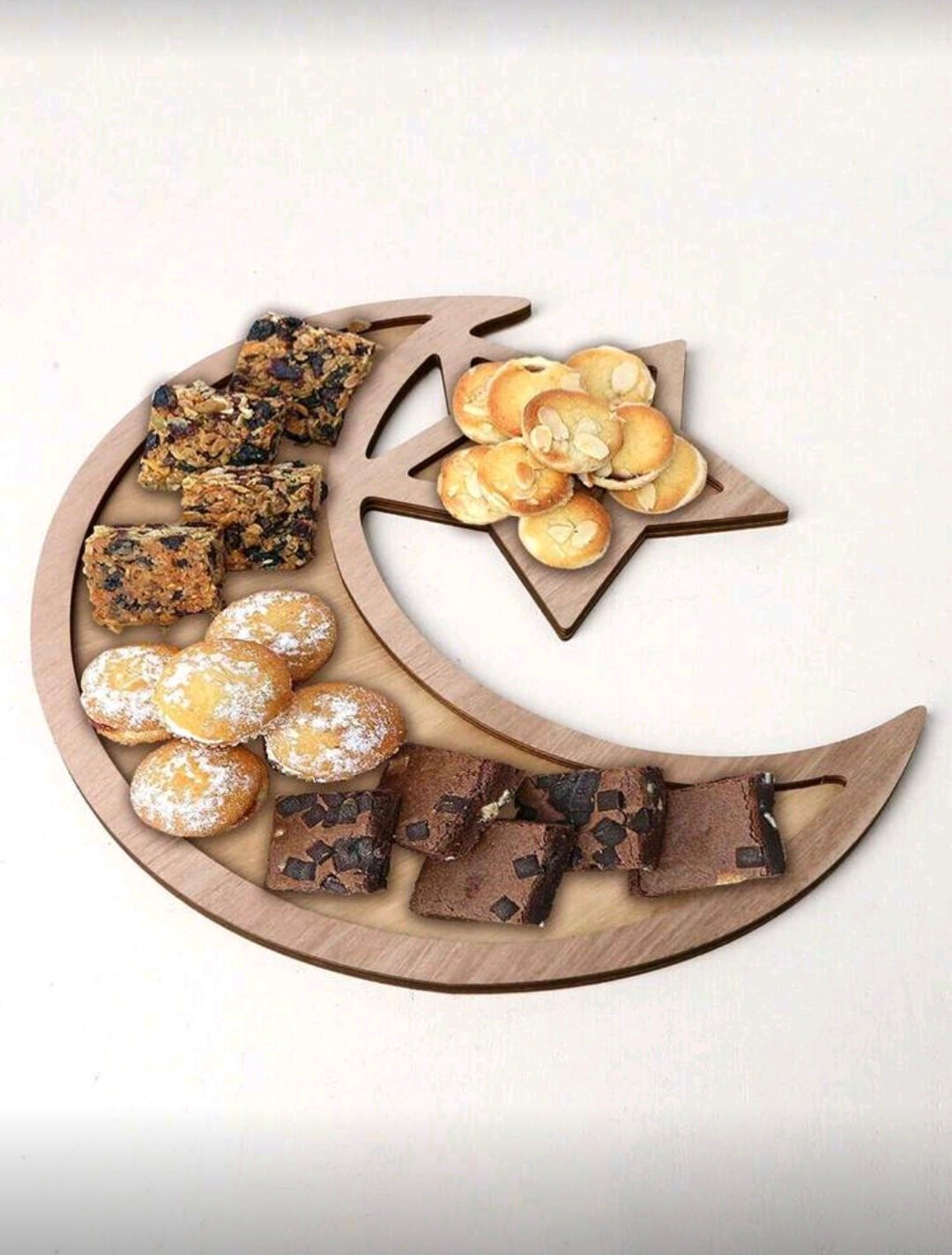 صنية خشبيه واحد بتصميم نجمه وقمر