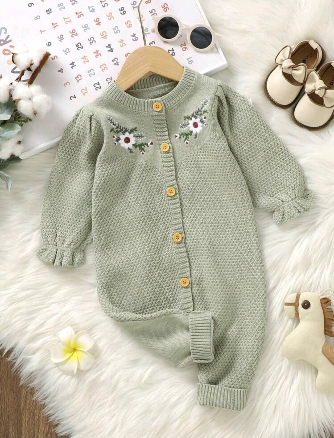 ملابس اطفالطقم اطفال حديثي الولادة رومبر محبوك مطرز لحديثي الولادة