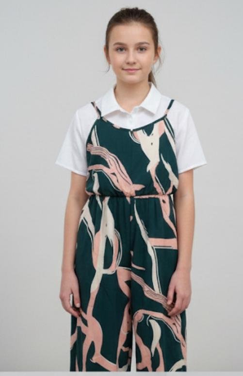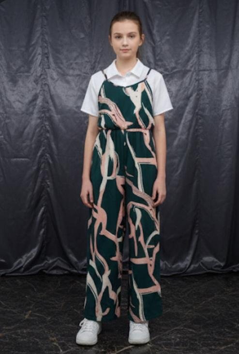 طقم مكون من قطعتين للبنات، بلوزة بأكمام قصيرة بلون موحد وبنطال ماكسي بدون أكمام بنقشة زهور مع حزام، زي أنيق للبنات، مناسب لفصلي الربيع والخريف.