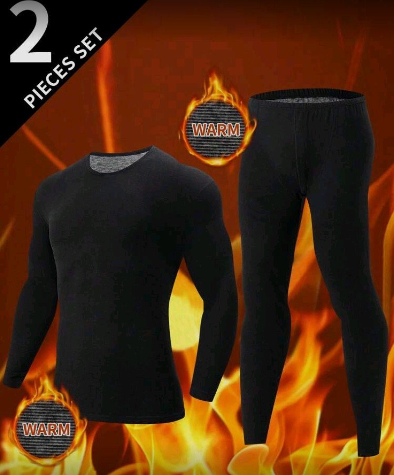 + Free Shippingطقم ملابس داخلية حرارية رجالية للخريف والشتاء، يتضمن توب برقبة دائرية وبنطلون.
