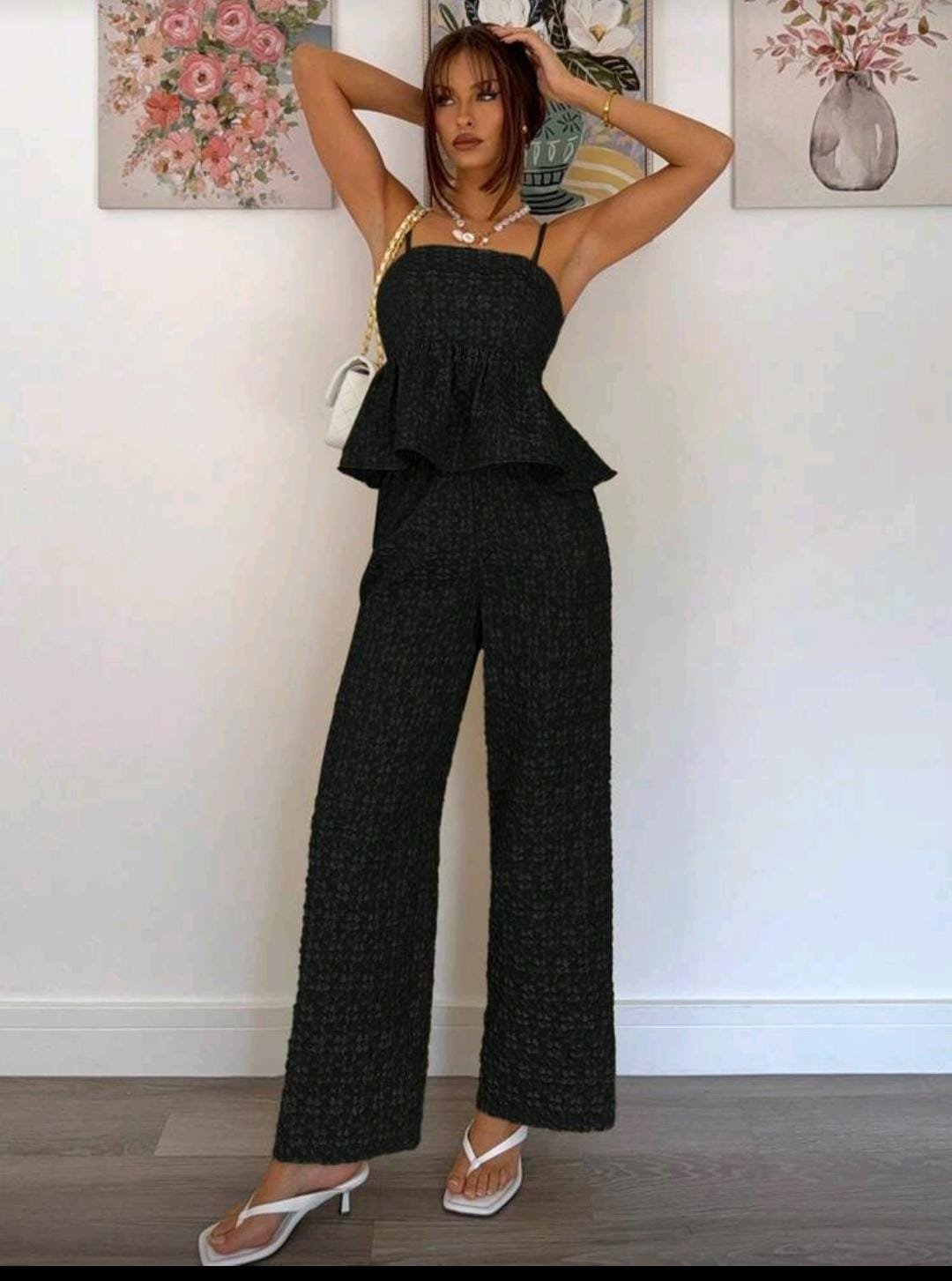 + Free Shippingطقم ستاتي مكون من قطعتين باللون الاسود السادة
