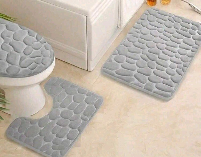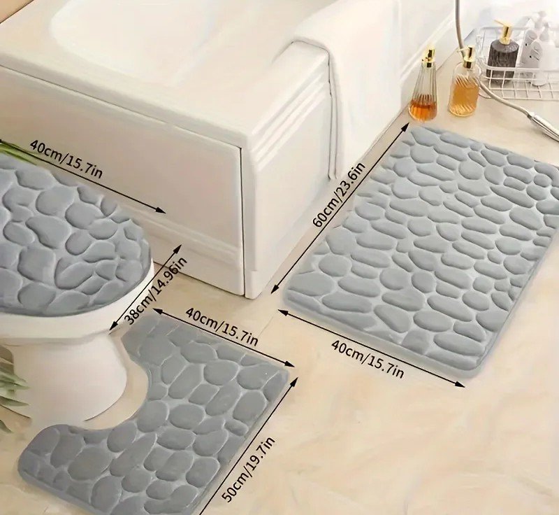طقم سجاد حمام ومرحاض من الحصى، 3 قطع، مانع للانزلاق والرطوبة – سجادة واحدة على شكل حرف U، لتزيين الحمام
