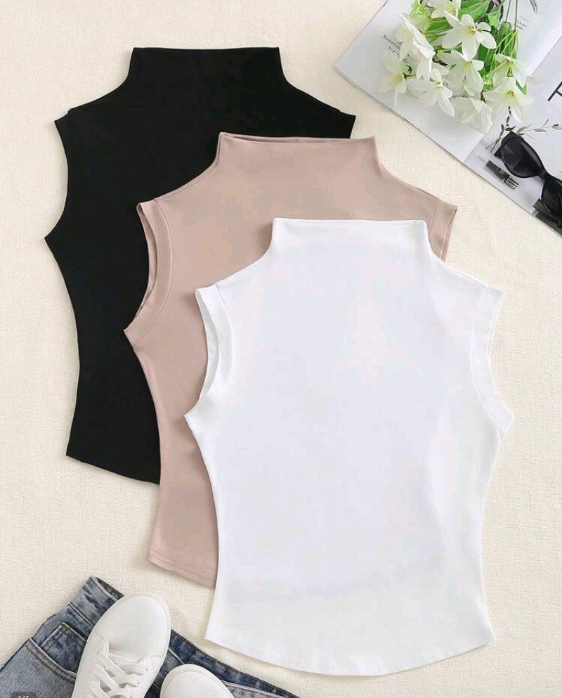 + Free Shippingطقم شباحات مكون من 3 قطع للنساء بتصميم كاجوال وياقة واقفة بدون أكمام