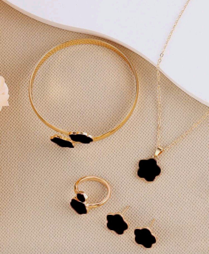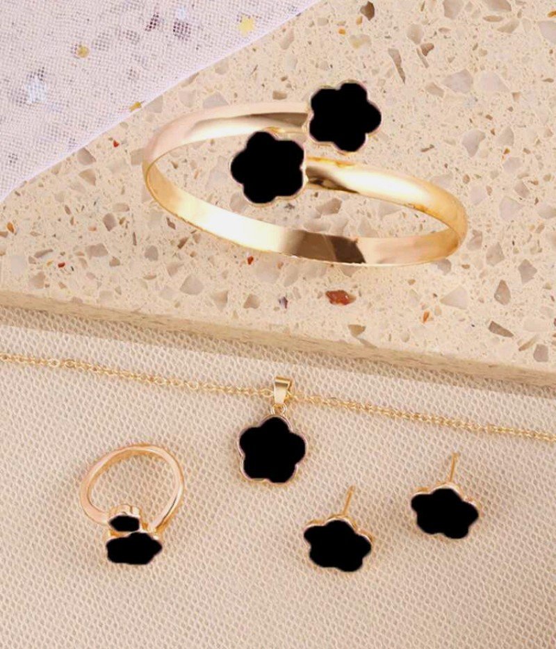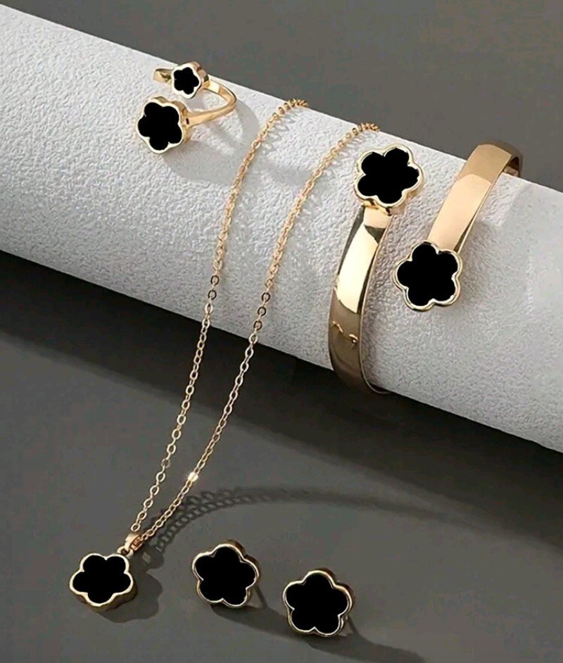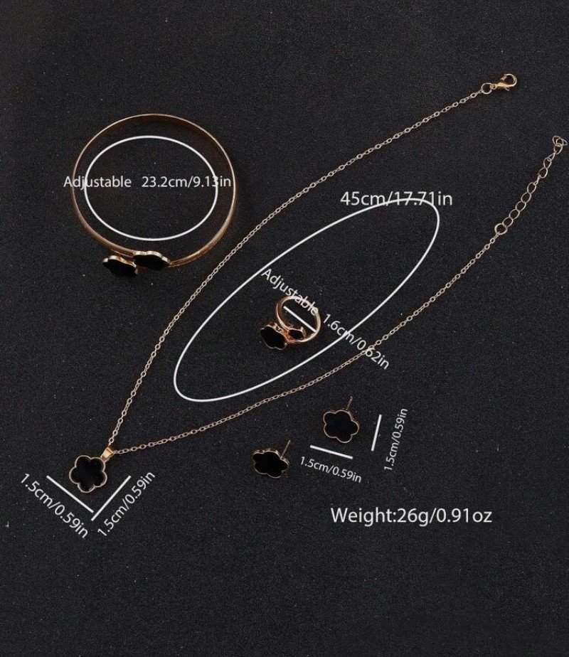 طقم مكون من 5 قطع بتصميم البرسيم المحظوظ: قلادة، أقراط، سوار، وخاتم