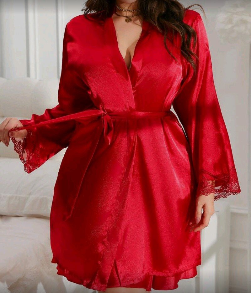 + Free Shippingطقم نوم من الساتان مكون من قطعتين بمقاسات كبيرة، مطرز، بياقة على شكل حرف V وروب بأكمام طويلة، من سيلكي سبيل، ملابس الخريف والشتاء