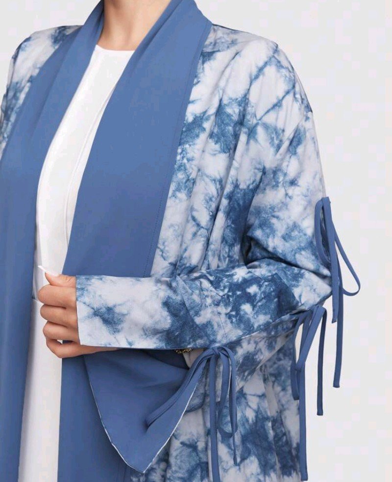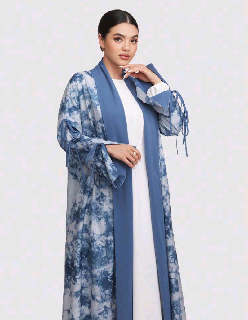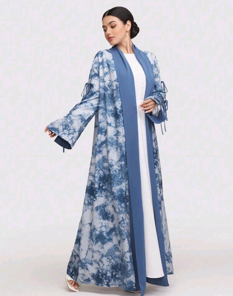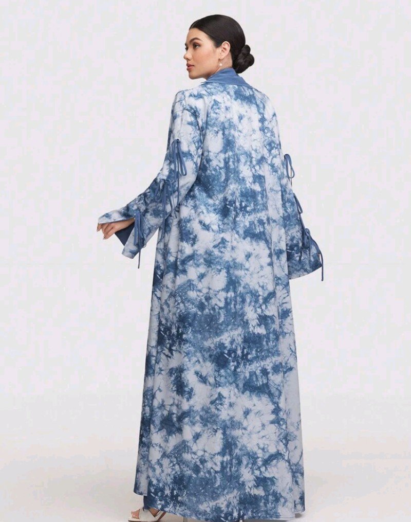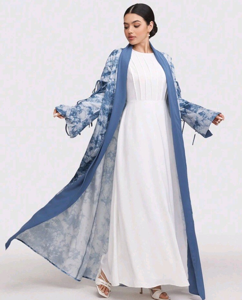 عباية فضفاضة طويلة الأكمام ذات طباعة صبغ التأثيري للنساء ، محتشم