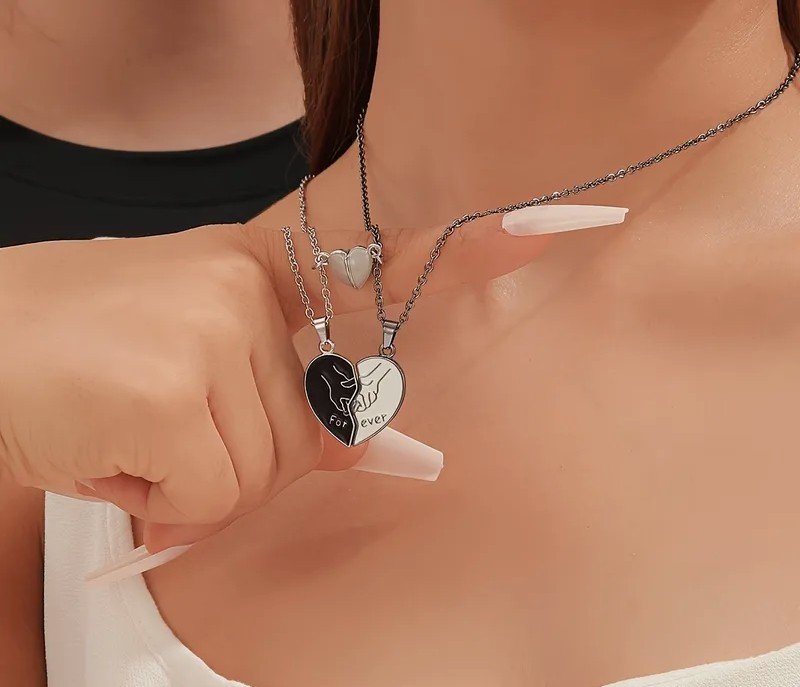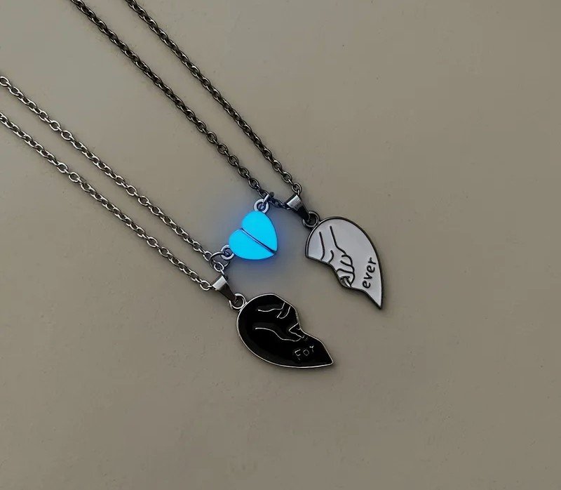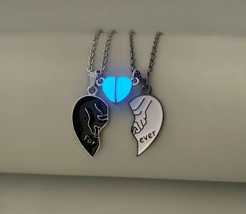 + Free Shippingطقم قلادة مكون من 2 قطعة/مجموعة، قلادة وعود نسائية عصرية مضيئة على شكل قلب خوخي بتصميم أيدي متشابكة للأبد