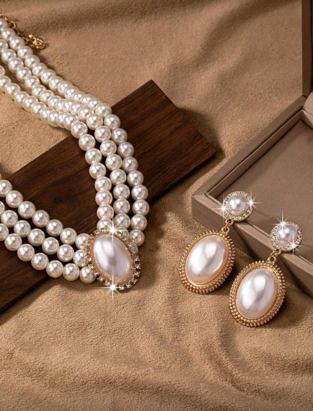 اكسسوارات ونثرياتقلاده من اللولو واحجار الراين العتيقه سلسه عصريه للنساء