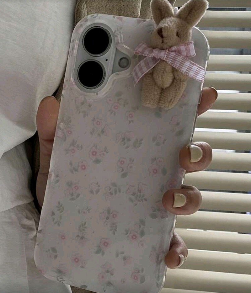 غطاء هاتف: غطاء هاتف ناعم كلاسيكي كامل التغطية بتصميم فتاة شابة لطيفة مع زهور بني أرنب وربطة 3D بنقشة مربعات، متوافق مع آيفون 12 pro max