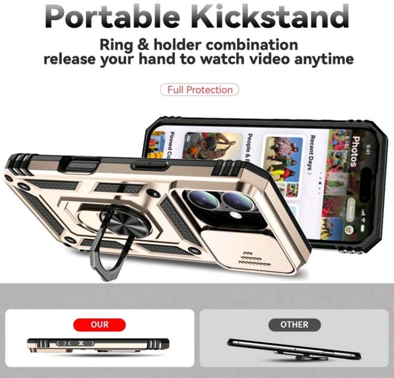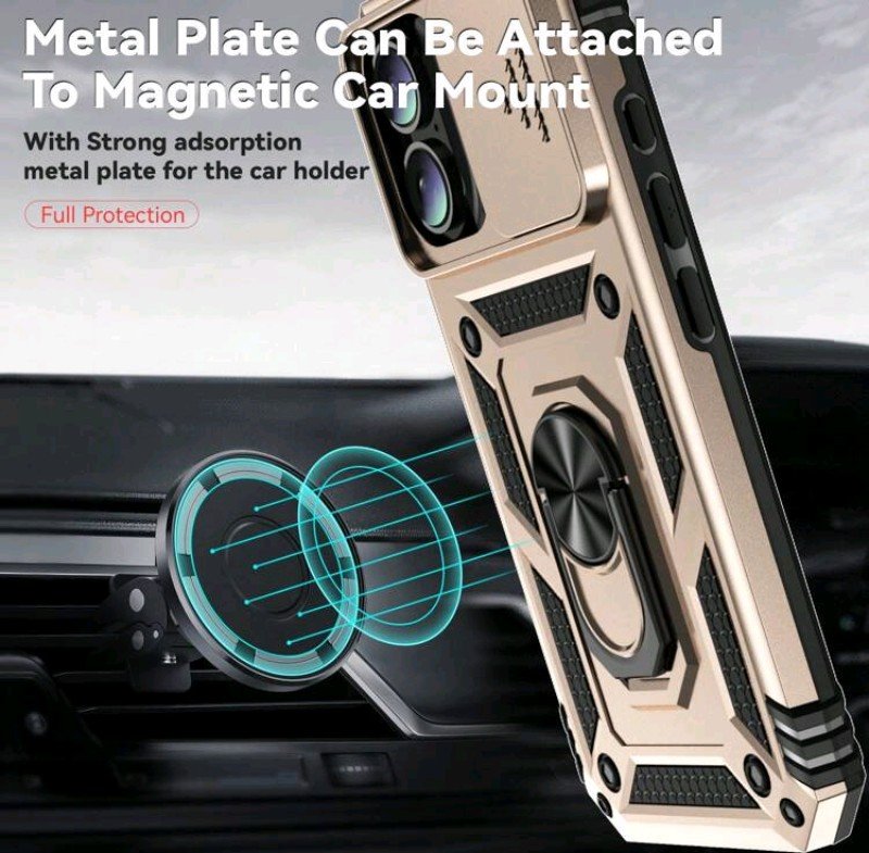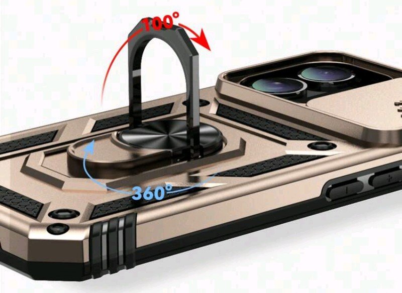 جراب هاتف مزود بغطاء كاميرا منزلق مع حامل حلقي، متوافق مع Xiaomi 11T/11 T pro، مقاوم للماء والصدمات والسقوط والخدوش.