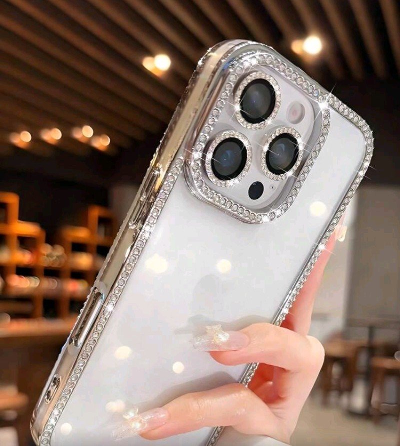 + Free Shippingغطاء هاتف: 1 غطاء هاتف كريمي بإطار مرصع بالراينستون اللامع، غطاء واقي فاخر مطلي بالكهرباء مع ترتر لامع مناسب ل IPhone 16 pro max