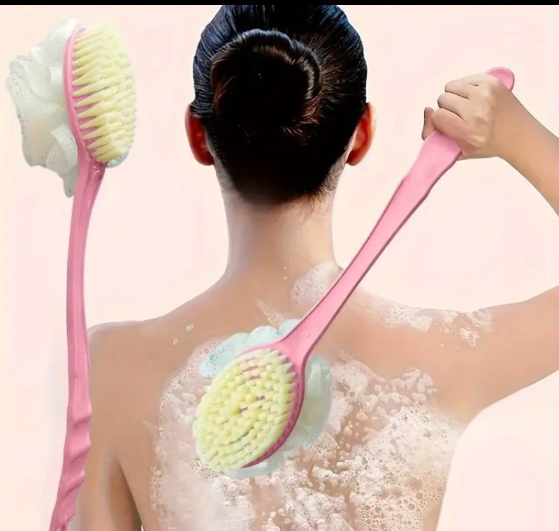 + Free Shippingقطعة واحدة من فرشاة استحمام بمقبض طويل وشعيرات ناعمة، مصممة كفرشاة استحمام يابانية تعمل لهدفين للتقشير وغسل الظهر.