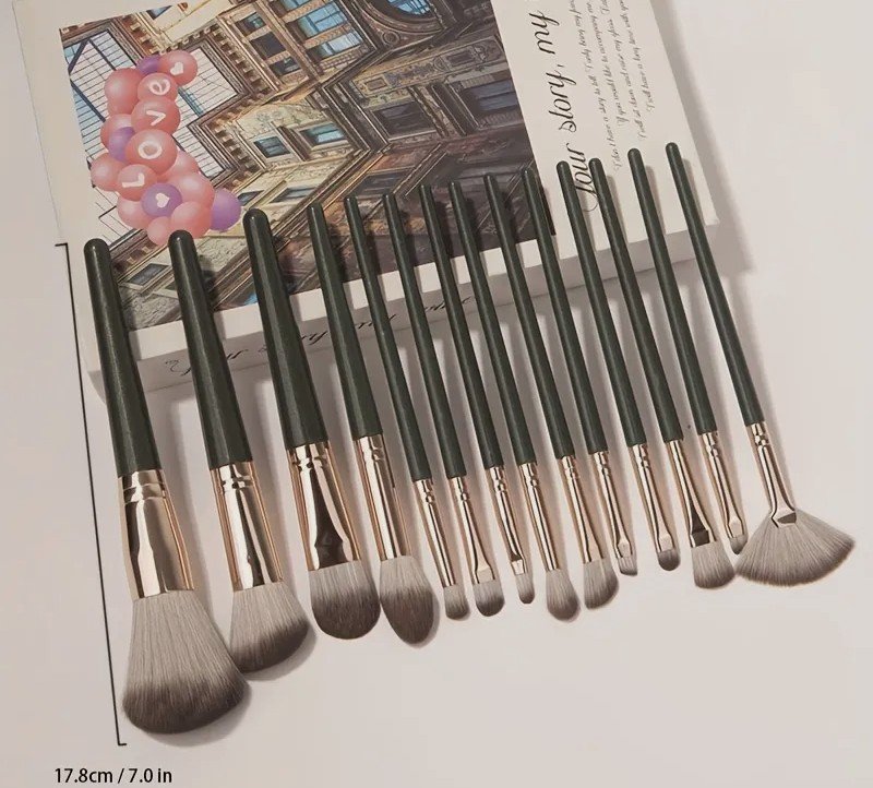 + Free Shipping14 قطعة مجموعة فرش مكياج فاخرة احترافية مع فرشاة كابوكي – شعيرات نايلون فائقة النعومة ولطيفة للبيج الفاتح، مجموعة أساس/بلاشر/بودرة/ظلال عيون – نظام مكياج كامل، هدية مثالية