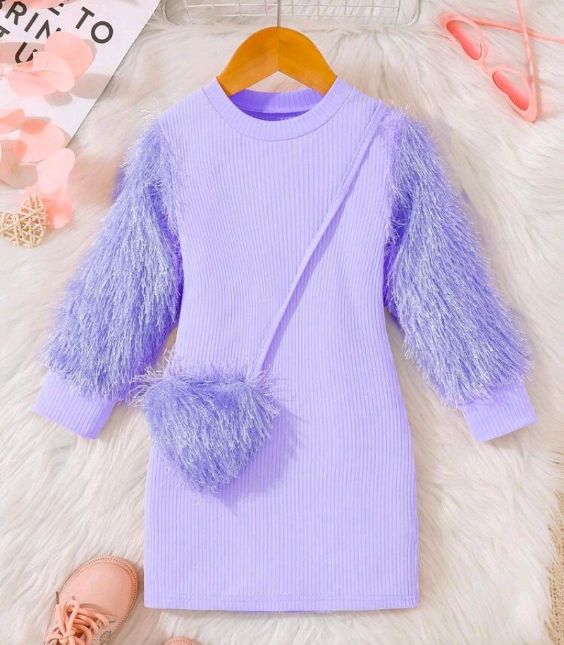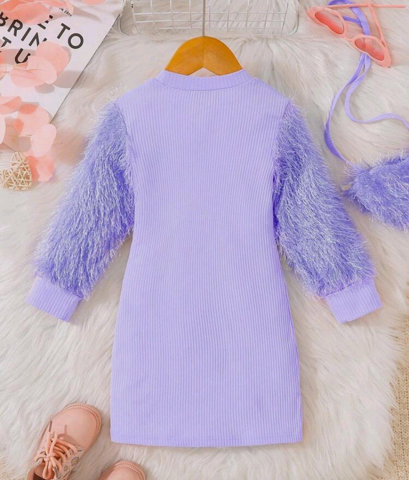 + Free Shippingفستان أميرة شتوي بأكمام بأصفاد فرو وفرو متطابق – فستان محبوك مريح بأكمام طويلة، قصة ضيقة للعيد الميلاد وحفلات الزفاف والملابس الكاجوال – طقم بناتي قابل للغسل في الغسالة