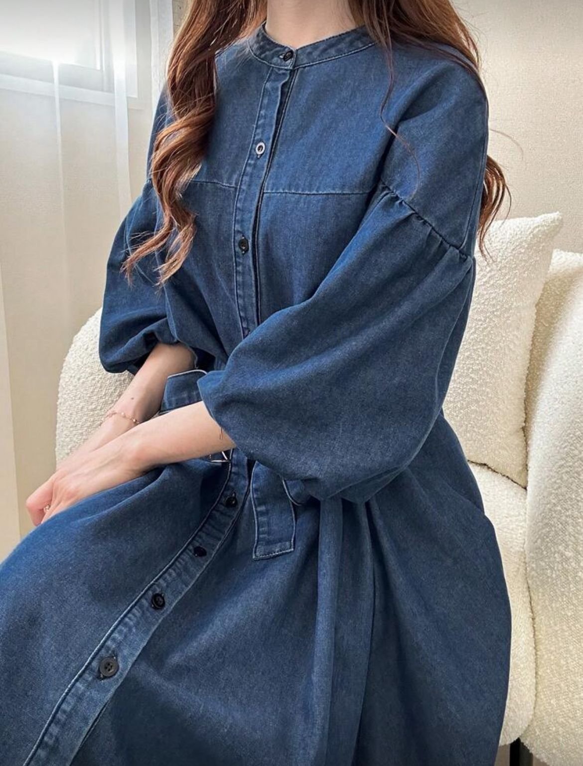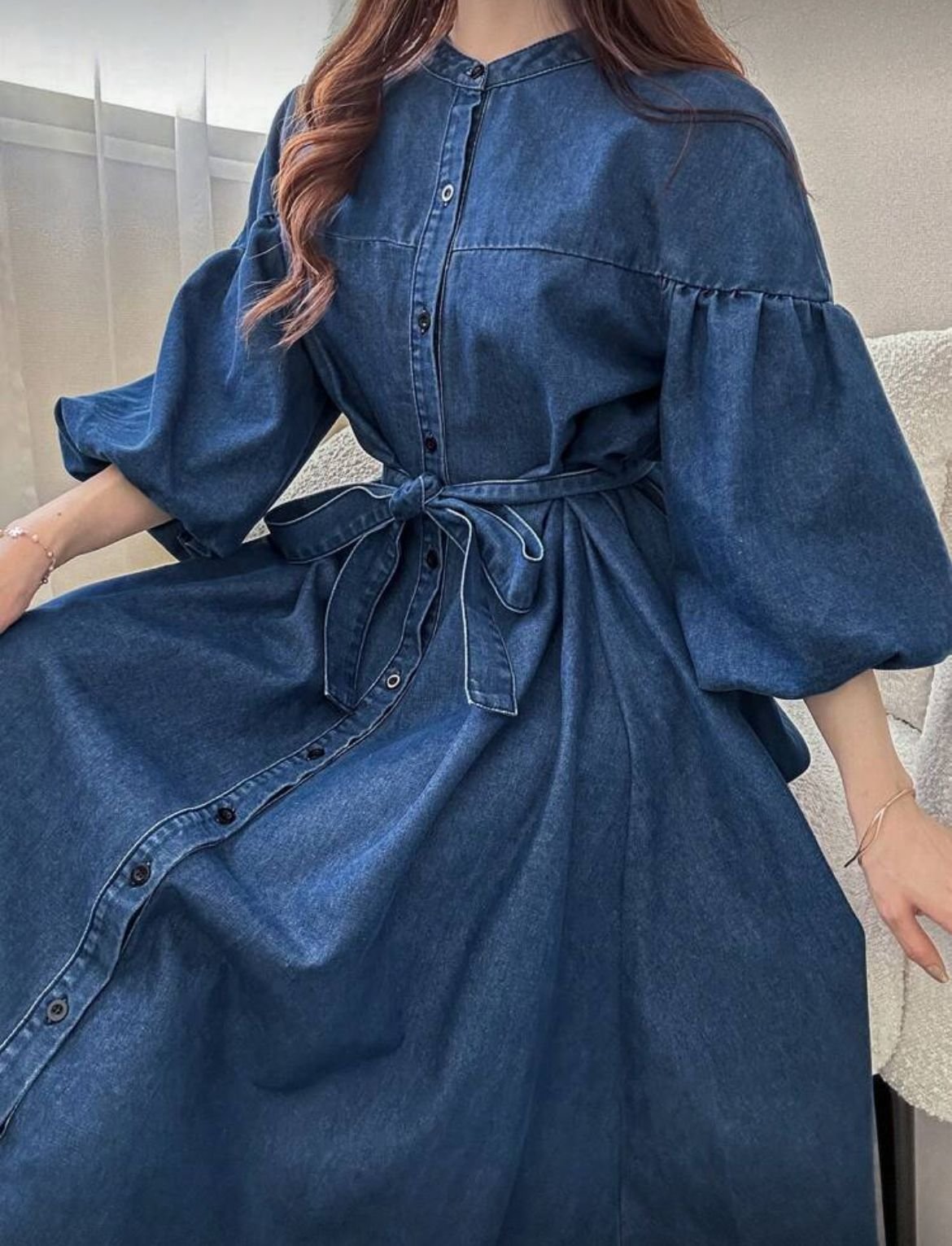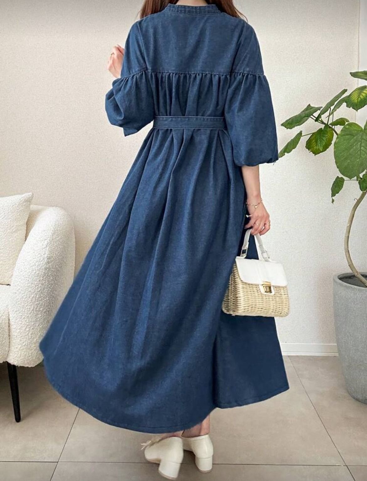 + Free Shippingفستان جينز نسائي كاجوال بتصميم أزرار وأكمام واسعة، ملابس نسائية، ملابس صيفية نسائية، صيفية نسائية، فساتين صيفية للعمل