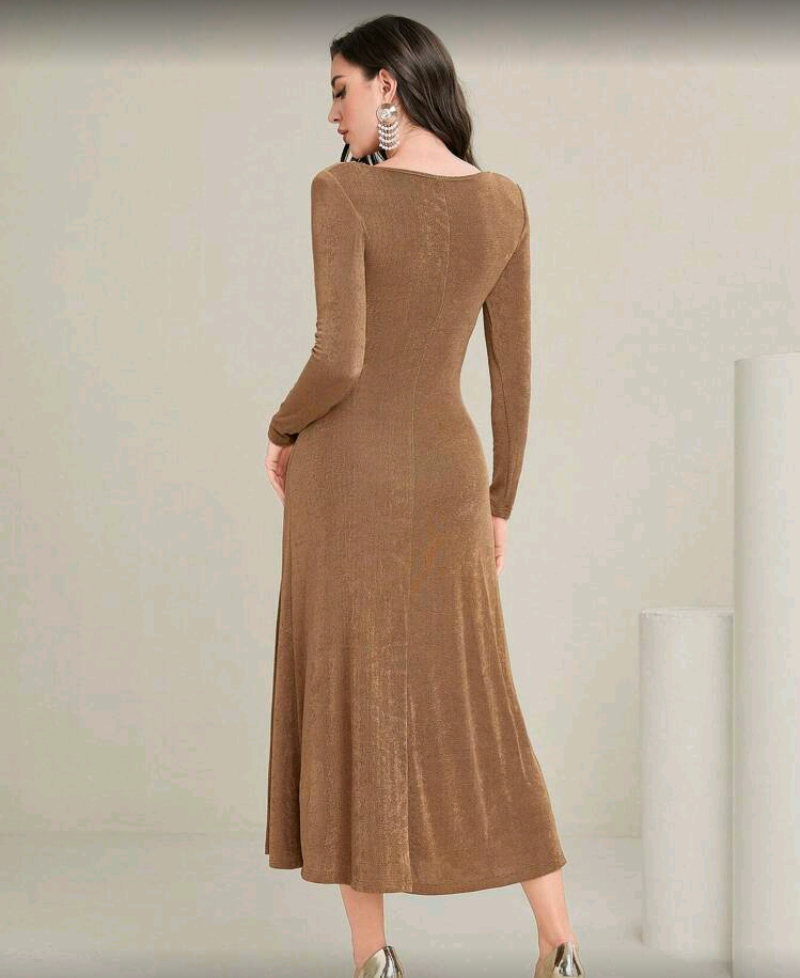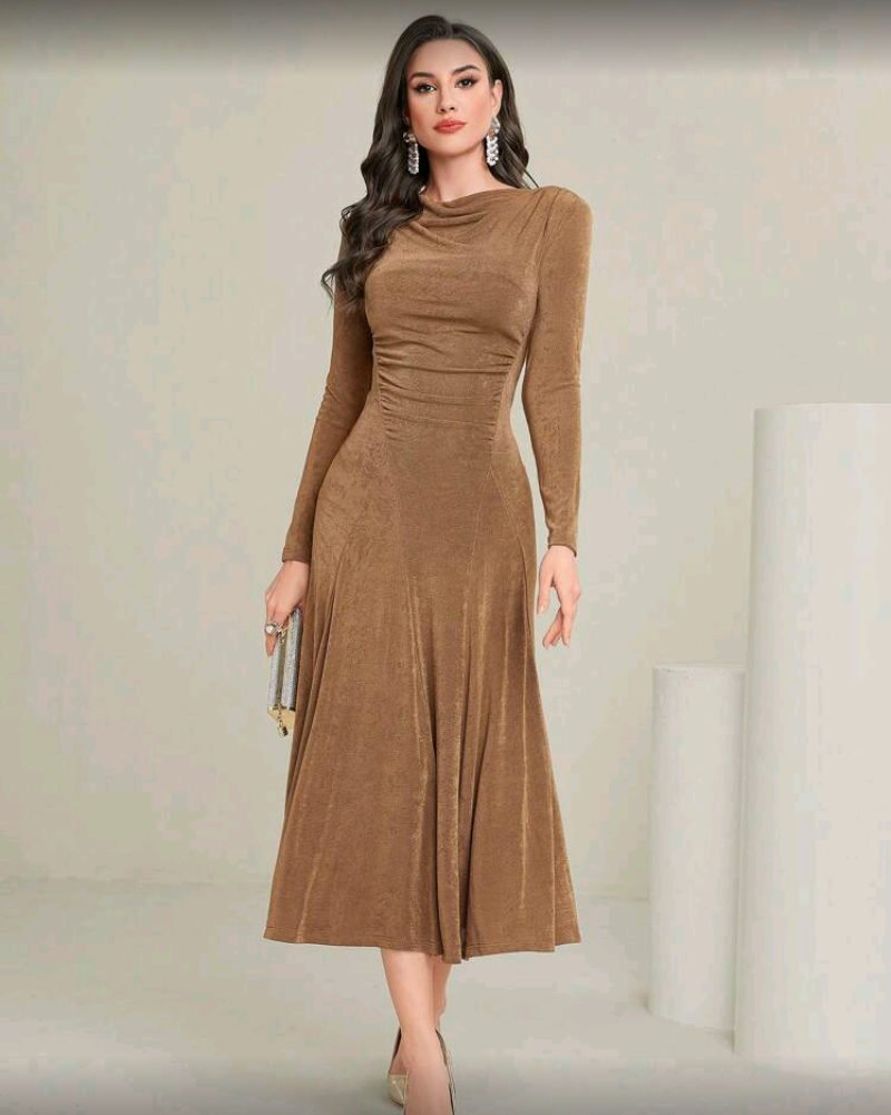 + Free Shippingفستان موديرن باكمام طويله وخصر محدد للنساء