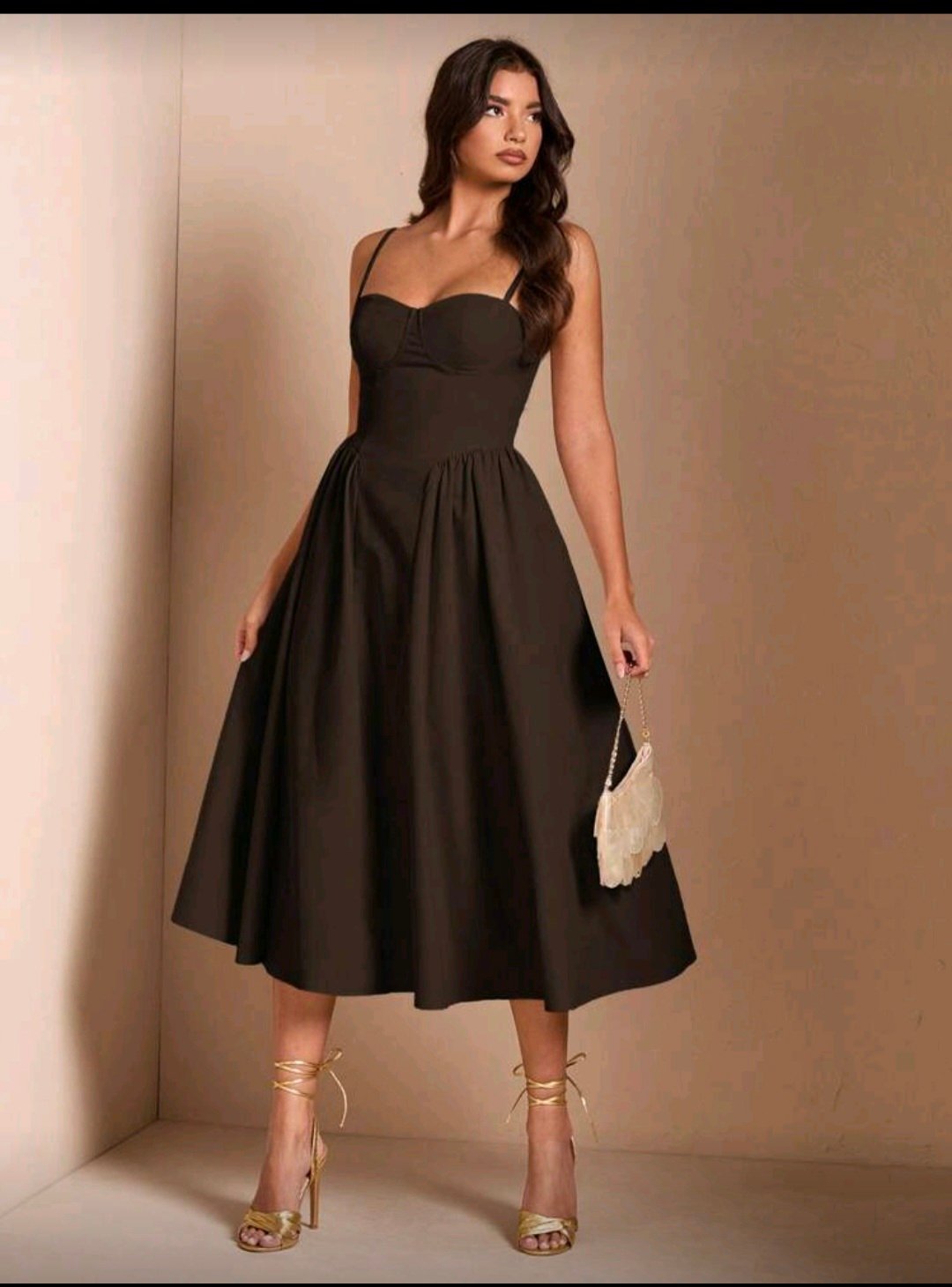 + Free Shippingاتجاهات المراة الانيقة فستان طويل بحزام سباغيتي واسع ومناسب