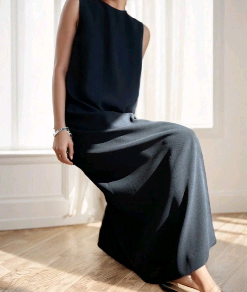 فستان اسود كاجوال بدون أكمام، أنيق أسود للربيع/الصيف