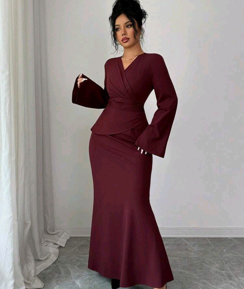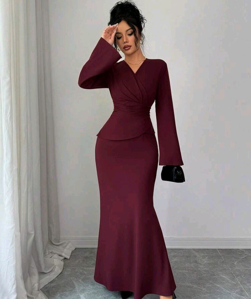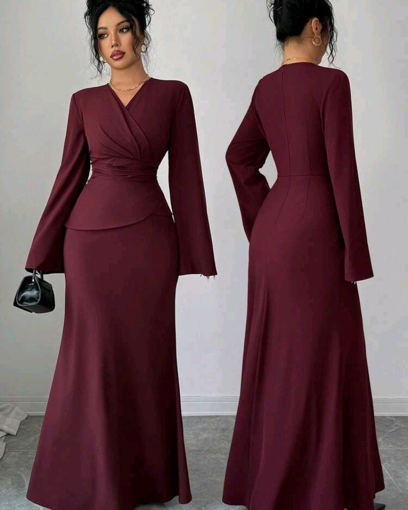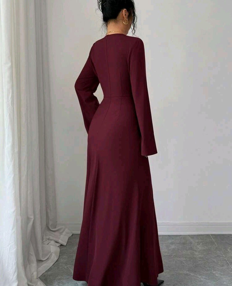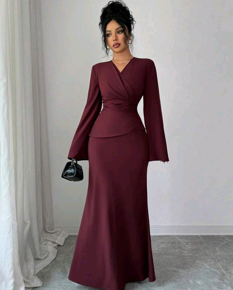فستان أنيق طويل باللون الأحمر للنساء، فستان رأس السنة الجديدة، ملابس رأس السنة الجديدة، ملابس ، فستان حفلة أنيق، فستان حفلة طويل، فستان لضيف الزفاف، فستان سهرة زفاف أنيق