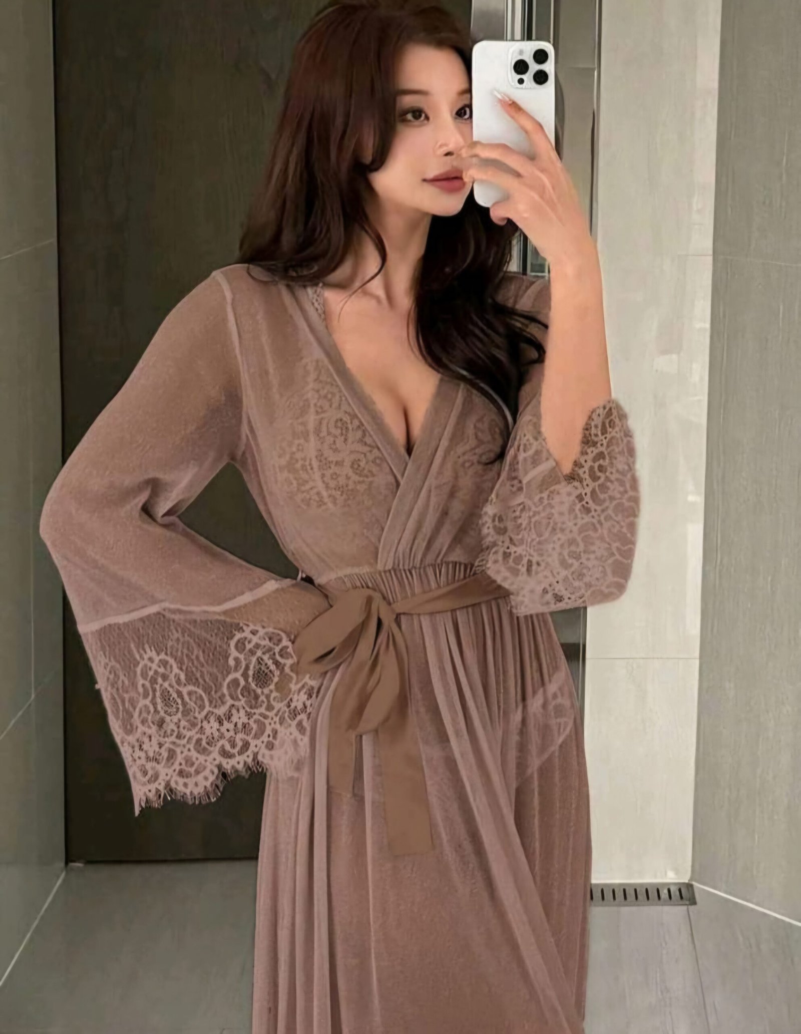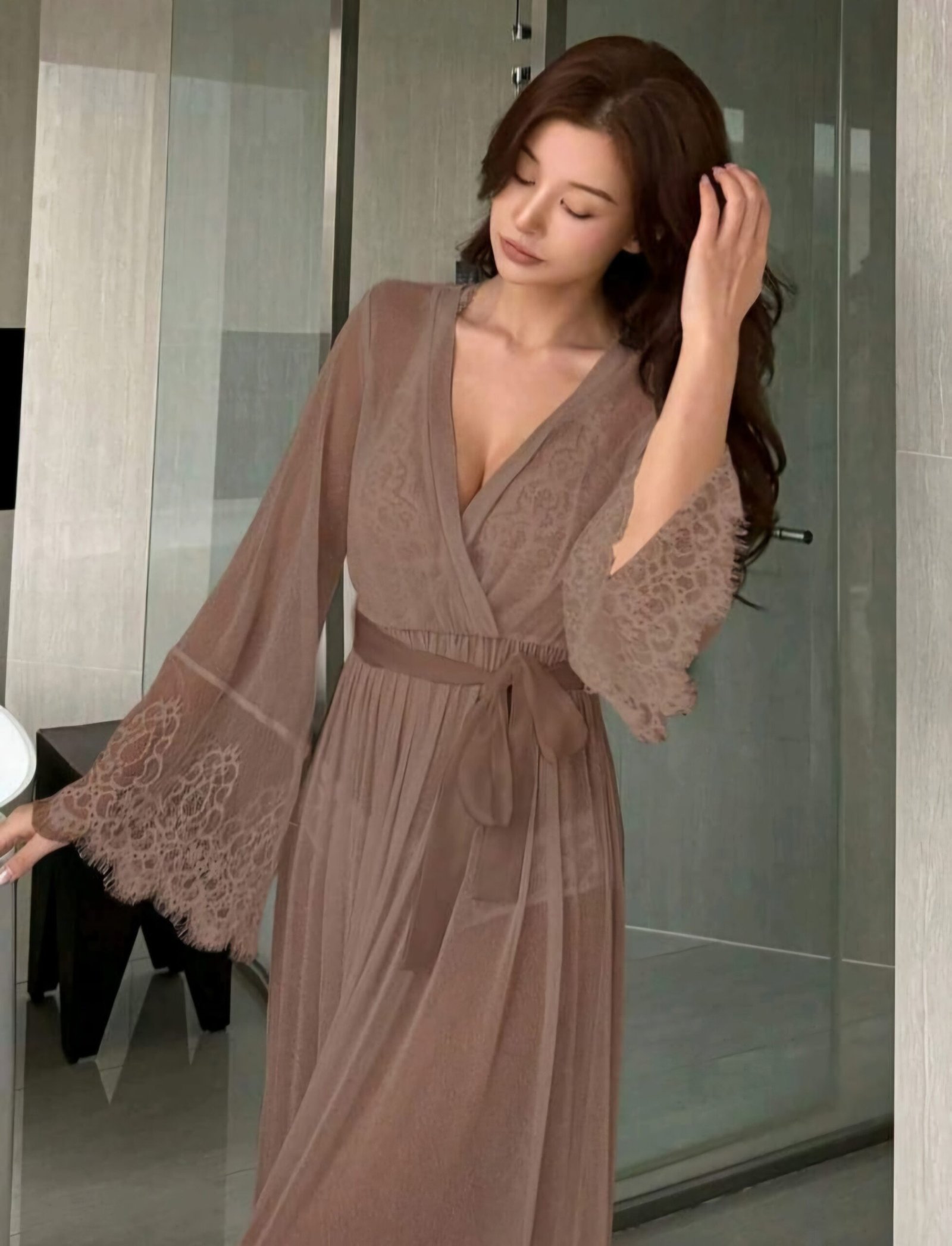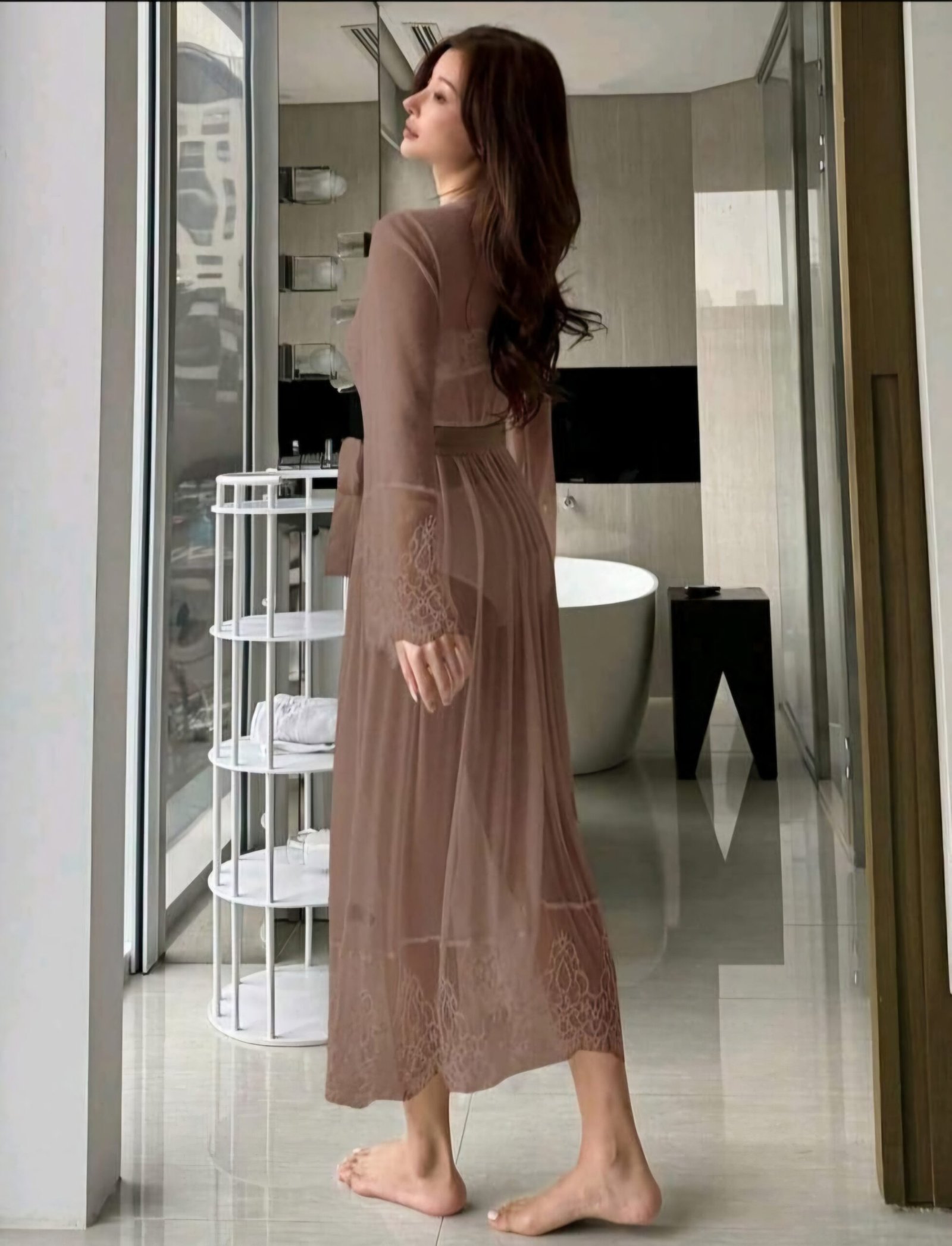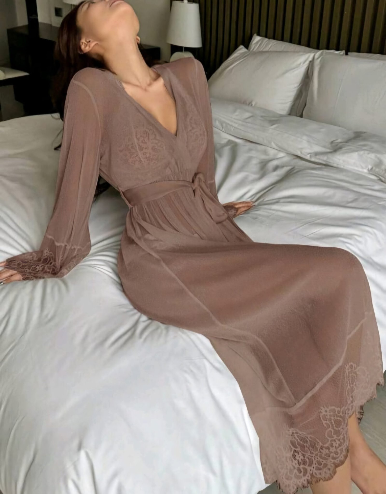 فستان شيفون مزين ب الدنتيل
