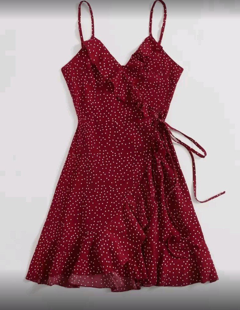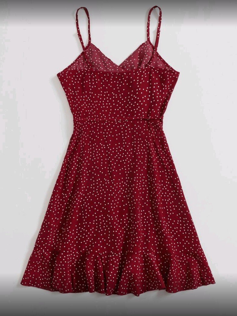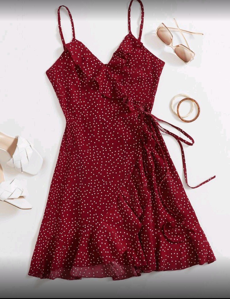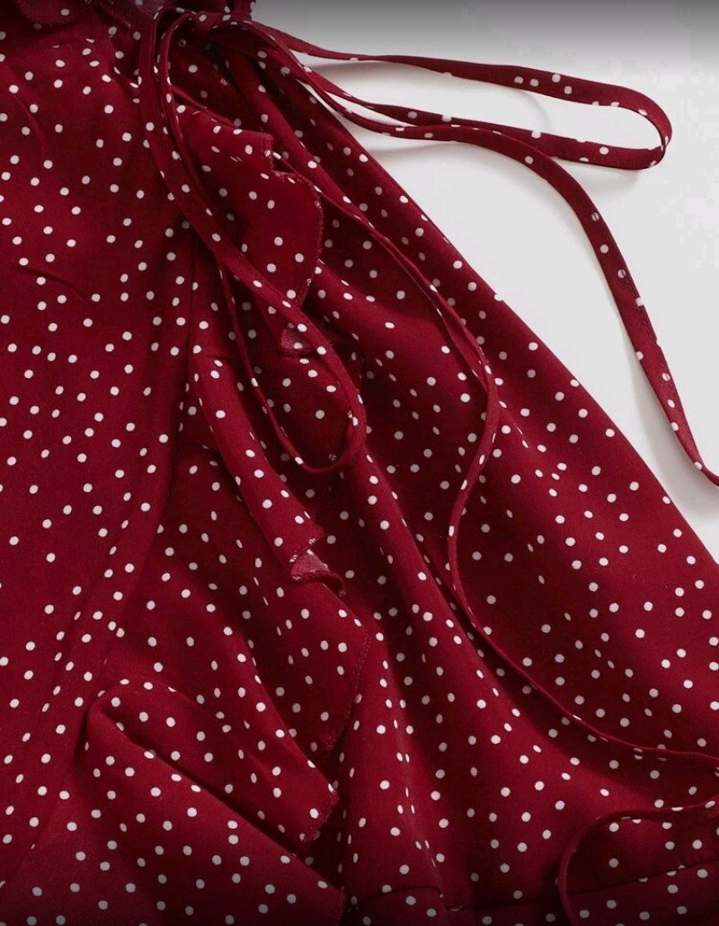 + Free Shippingفستان كامي مزين بكشكشة جانبية وعقدة منقطة من سوليا، فستان منقط