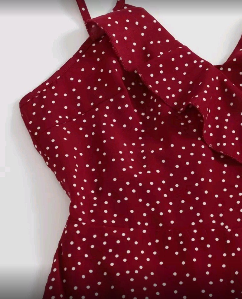 فستان كامي مزين بكشكشة جانبية وعقدة منقطة من سوليا، فستان منقط