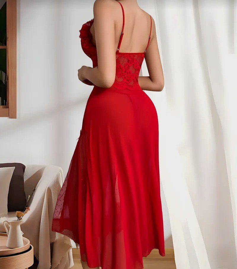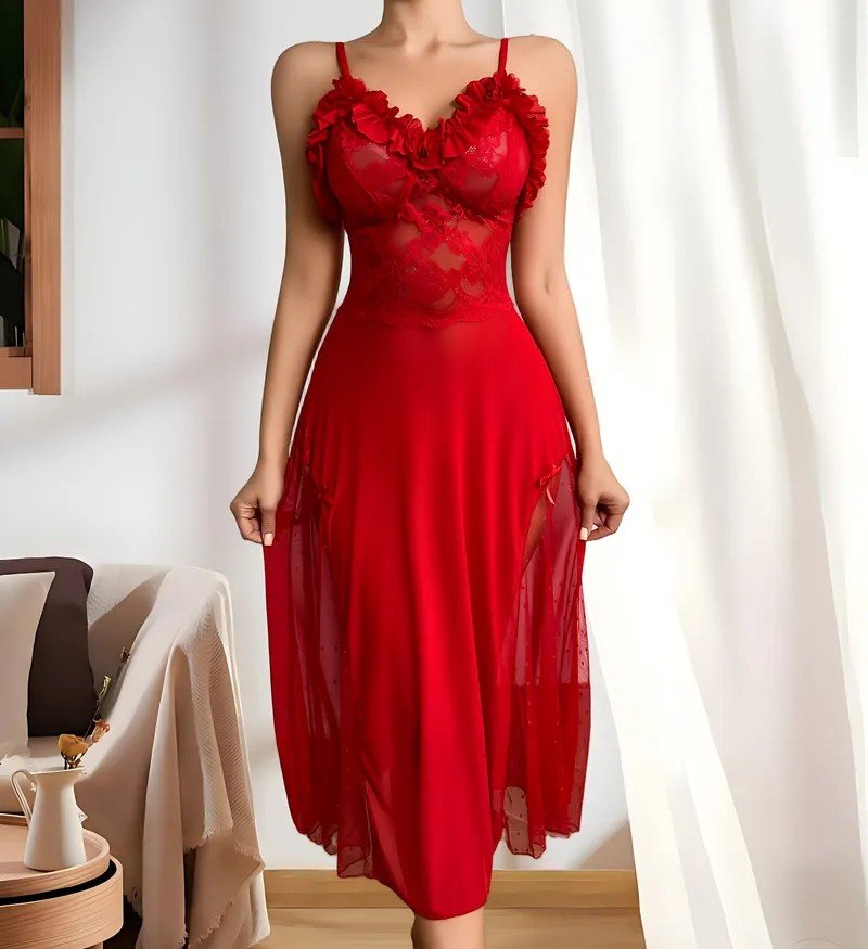 + Free Shippingفستان نوم نسائي جذاب بدون أكتاف بتصميم دانتيل عميق – حافة مكشكشة وياقة مكشكشة، شبه شفاف، فستان عيد الميلاد/عيد الحب الأحمر، قابل للغسل اليدوي، فستان زفاف أو فستان يومي ليلي للنساء