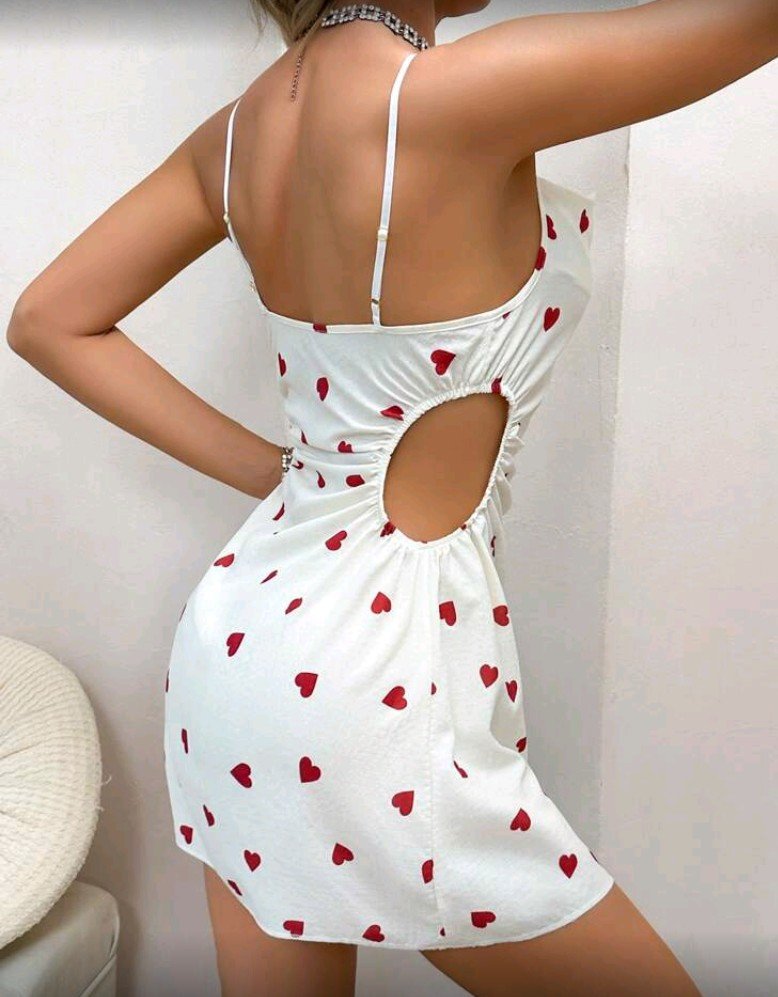 ملابس نوم ستاتي بخصر مفتوح وحمالات رفيعه وتصميم مطبوع