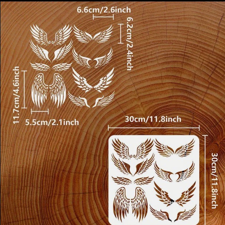 + Free Shippingقالب أجنحة الملاك – 8 أنماط ريشة فريدة، قالب أجنحة خيالية قابل لإعادة الاستخدام للخشب، الجدران، الأثاث وصنع المجوهرات، بلاستيك متين