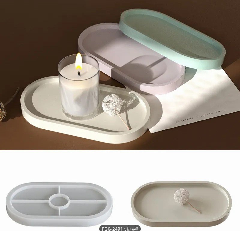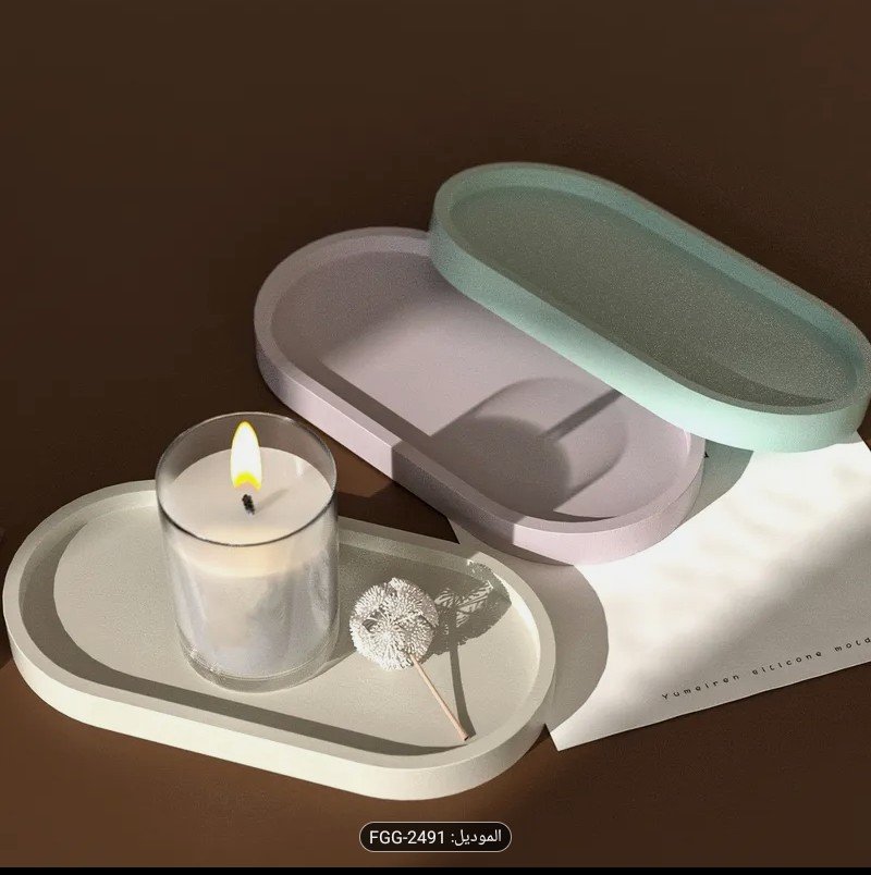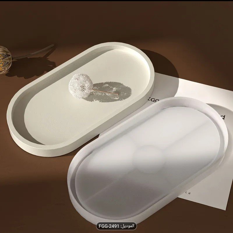 قالب سيليكون للرسم اليدوي على شكل بيضاوي لصنع صينية تخزين، قاعدة وعاء زهور، صينية لتخزين المجوهرات، وزينة منزلية من الراتنج لصنع الجبس.