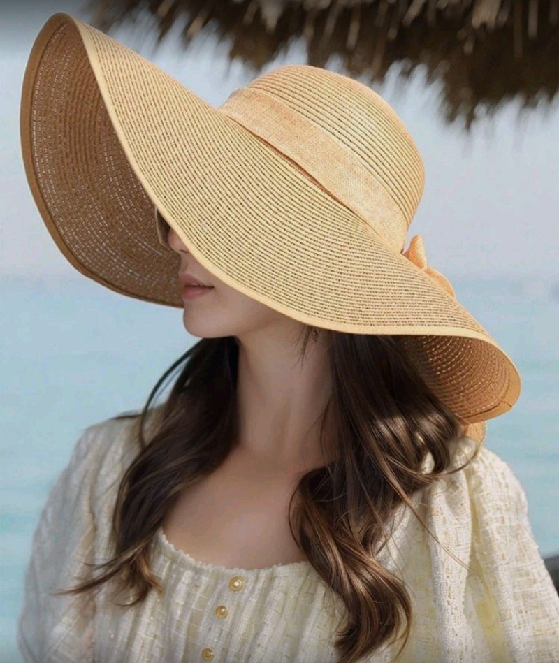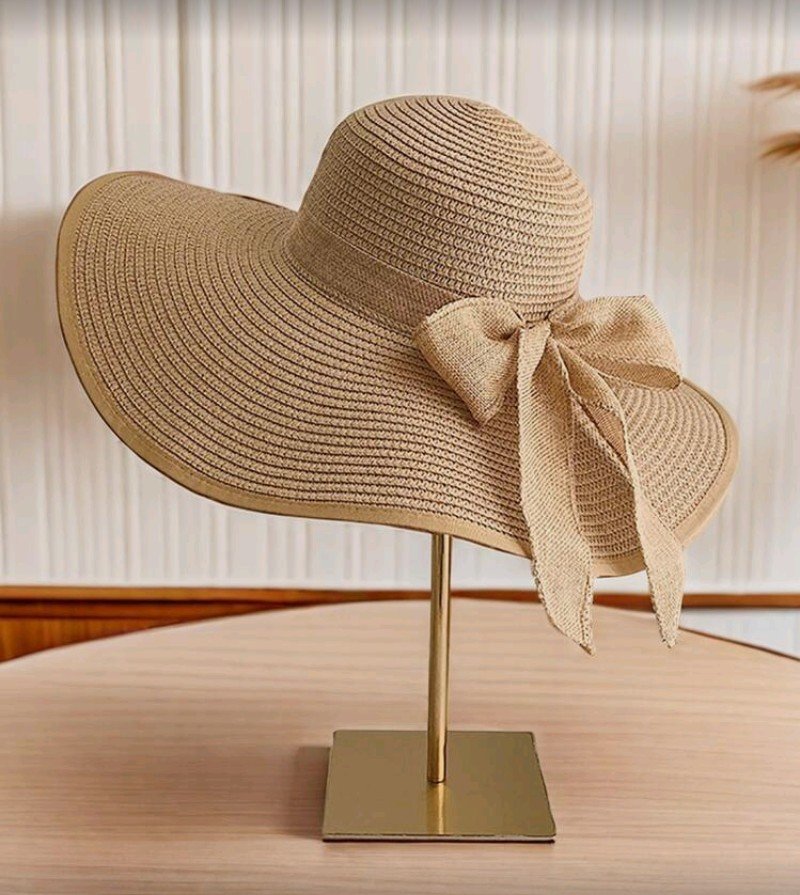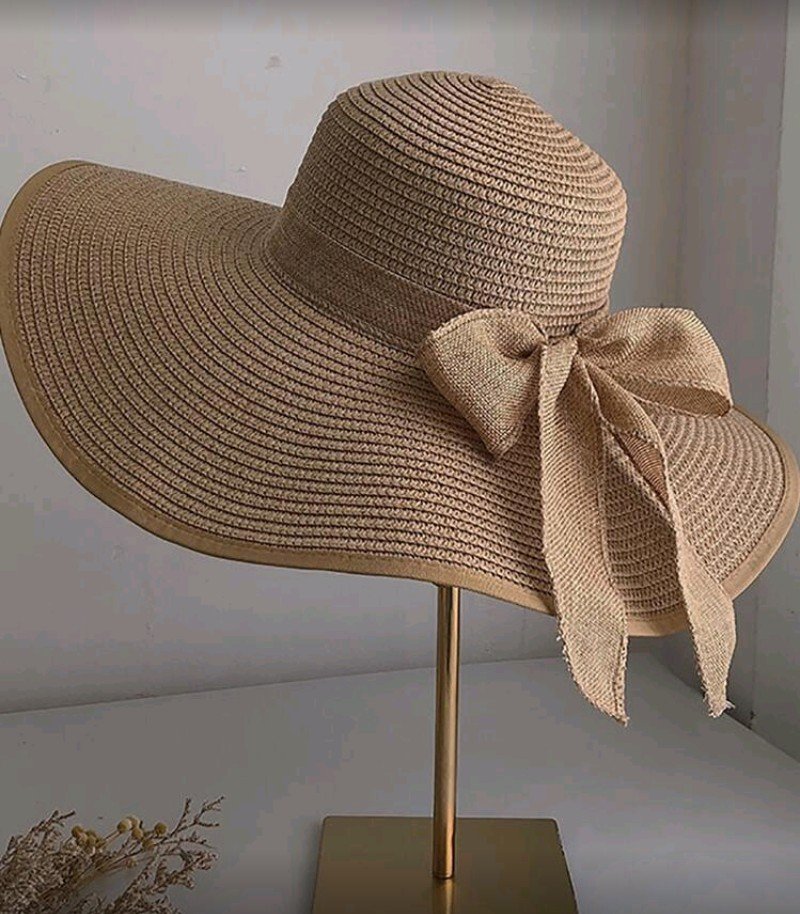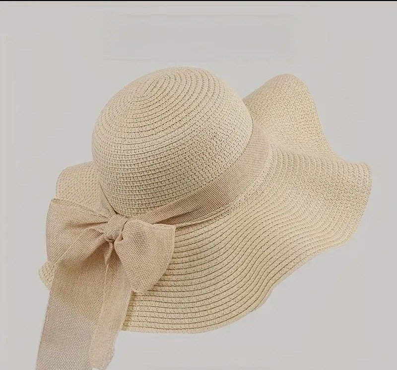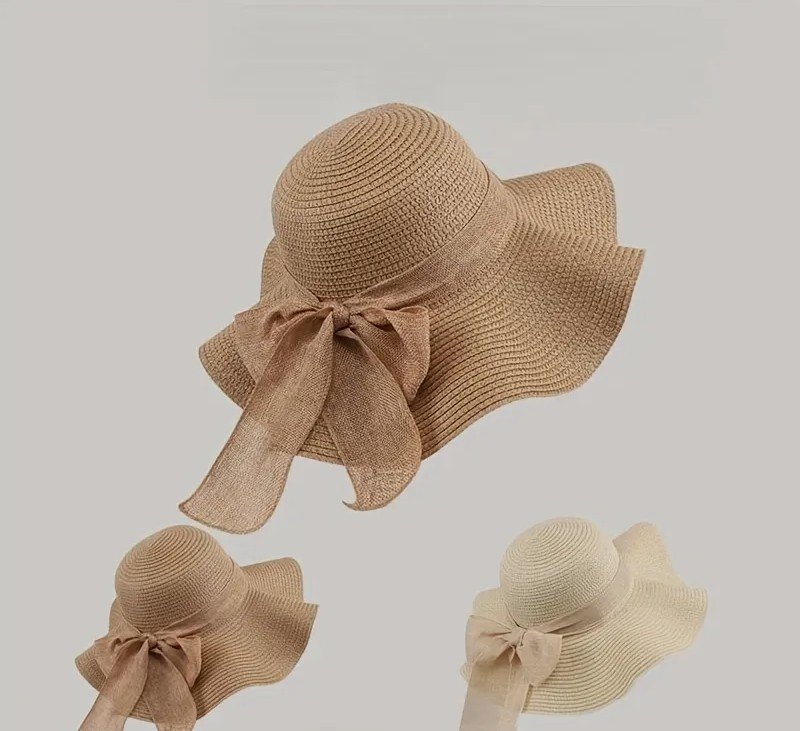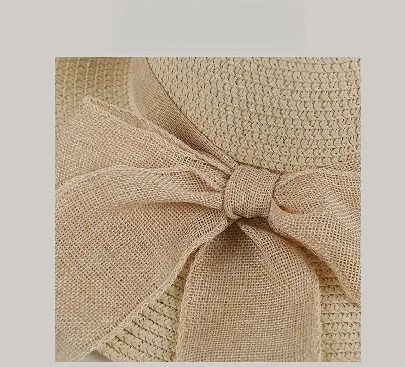 + Free Shippingقبعة نسائية من القش بفيونكة بتصميم ريفي، قبعة شاطئ قابلة للطي للصيف، قبعة شمس عريضة ذات استخدامات متعددة للشاطئ.