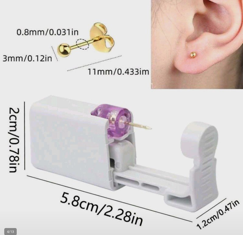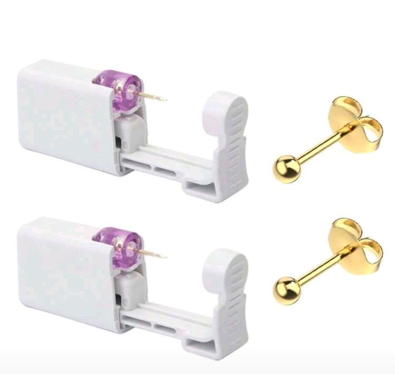 طقم ثقب الأذن مكون من قطعتين، مسدس ثقب أذن للاستخدام مرة واحدة مع أقراط كروية ذهبية مدمجة مقاس 3 مم، أدوات ثقب الأذن المنزلية الذاتية