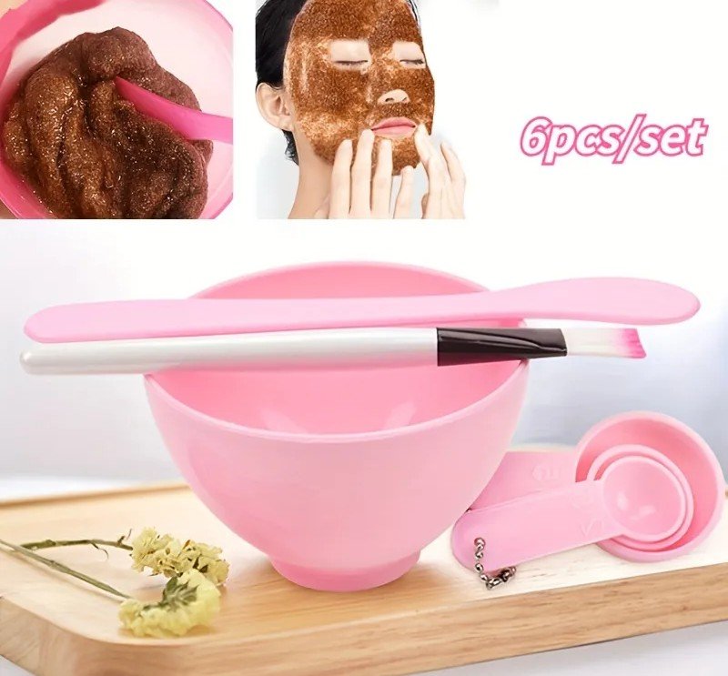 مجموعة من 6 فرش للوجه، وأوعية، وملاعق – أدوات احترافية لخلط وتطبيق الوجهات ومستحضرات العناية بالبشرة