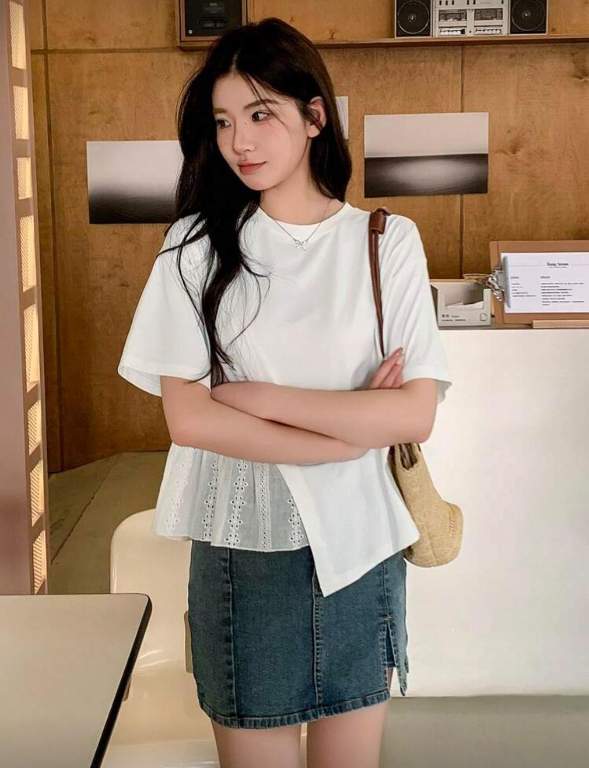 تي شيرت نسائي أنيق أكمام قصيرة، ياقة مستديرة، بوليستر خفيف، أساسي للصيف، قصة فضفاضة، نمط متعدد الاستخدامات، تي شيرت نسائي