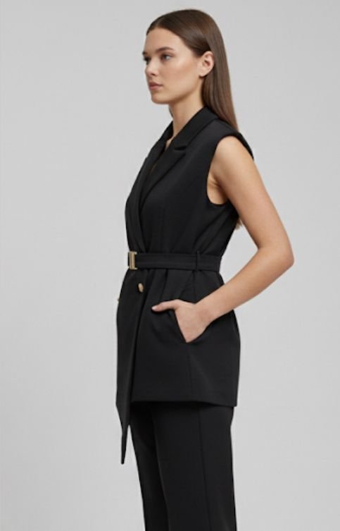 بليزر نسائي بسيط وعصري بلون موحد بدون أكمام