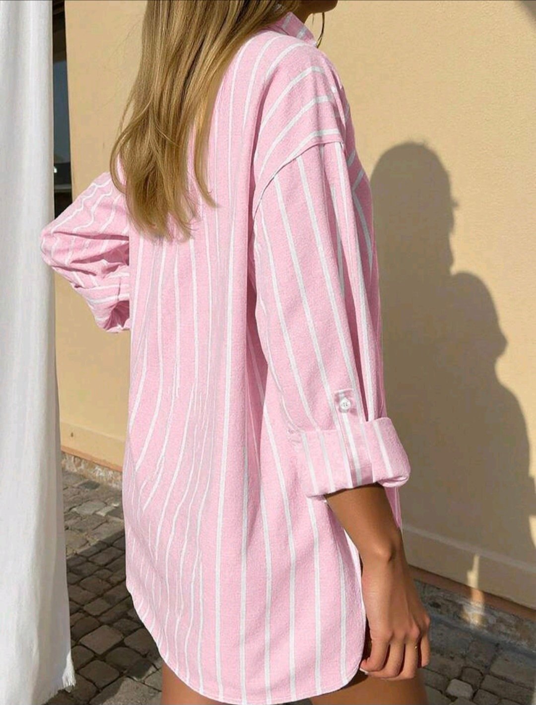 ملابس نسائيةقميص ستاتي كاجوال مخطط انيق باكمام طويلة